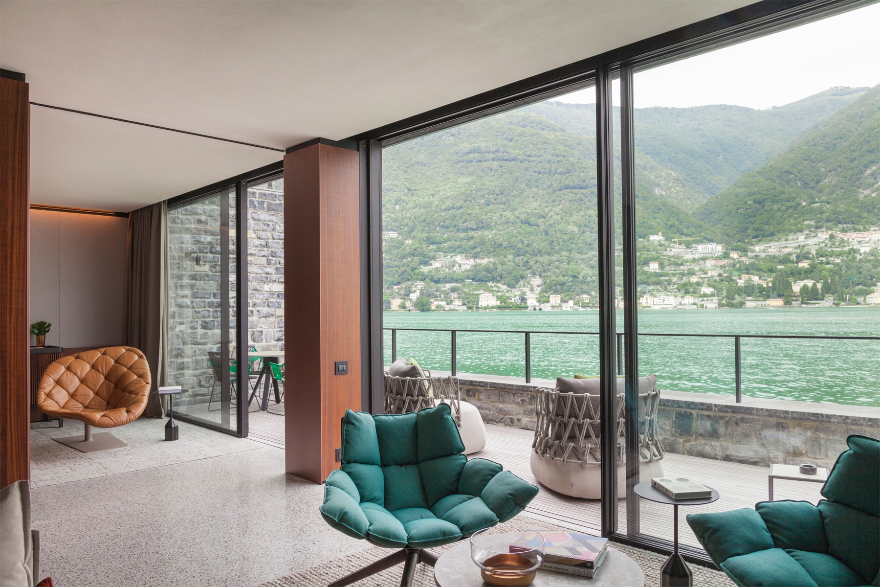 L’hotel si estende per circa 450 metri lungo la riva orientale del Lago di Como, a Torno, ed è realizzato in gran parte con materiali naturali come il legno, la pietra, la lana e altri tessuti. Le sue suite fronte lago vantano finestre dal pavimento al soffitto e ampie terrazze arredate. La struttura dispone anche di una piscina a sfioro di 60 metri sospesa sul lago, una SPA sotto archi in pietra originali risalenti a diversi secoli fa e un ristorante stellato bordo lago, Il Sereno Al Lago, guidato dall’Executive Chef Raffaele Lenzi.