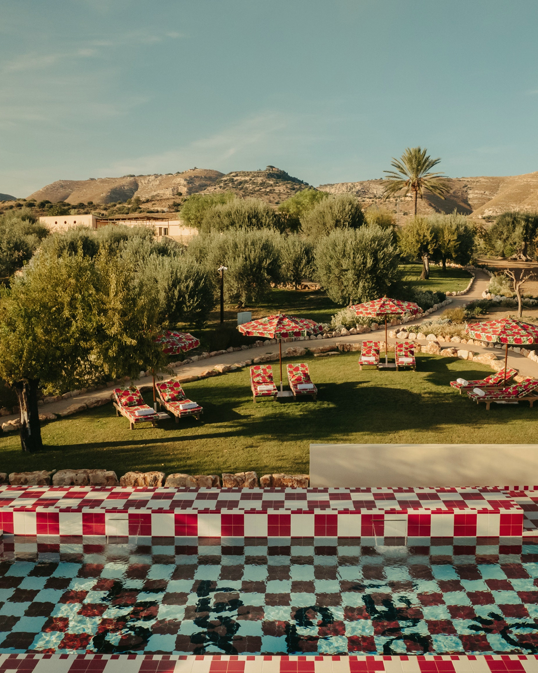 Nel caso poi si volesse fare una gita fuori porta nella Val di Noto, nelle campagne nei pressi di Avola sorge il Boutique Hotel Braccialieri, un gioiellino immerso tra gli ulivi secolari che per questa stagione è stato rivisitato in chiave pop da Alessandro Enriquez. Il creativo, ispirandosi dichiaratamente alla casa della nonna, ha vestito di scacchi bianchi e rossi, gerani in fiore e agrumi le tre suite della casa padronale e le sei ville sparse nella tenuta.