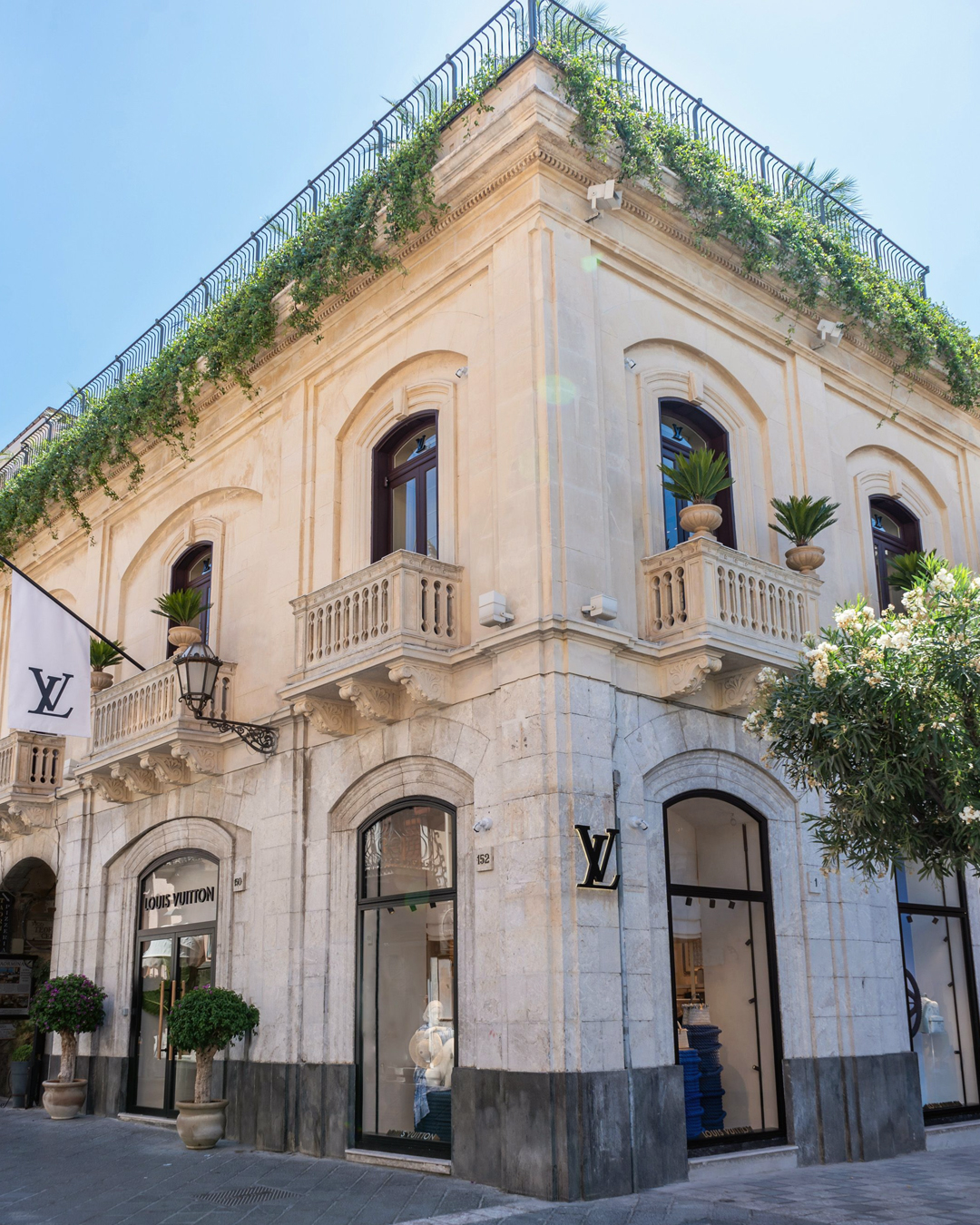 L’esperienza brandizzata prosegue poi nel cuore di Taormina. Passeggiando lungo la centrale Corso Umberto, fermandosi all’angolo di Piazza IX Aprile e salendo all’ultimo piano dello storico palazzo che ospita la boutique di Louis Vuitton, è possibile sorseggiare un buon drink firmato dalla maison francese, godendo al contempo di una vista mozzafiato sul mare. Tra le sedute in legno e corda, il vetro blu e il giallo dei limoni, anche quest’anno la griffe di LVMH ha infatti riaperto Le Bar, il primo sky bar del brand.