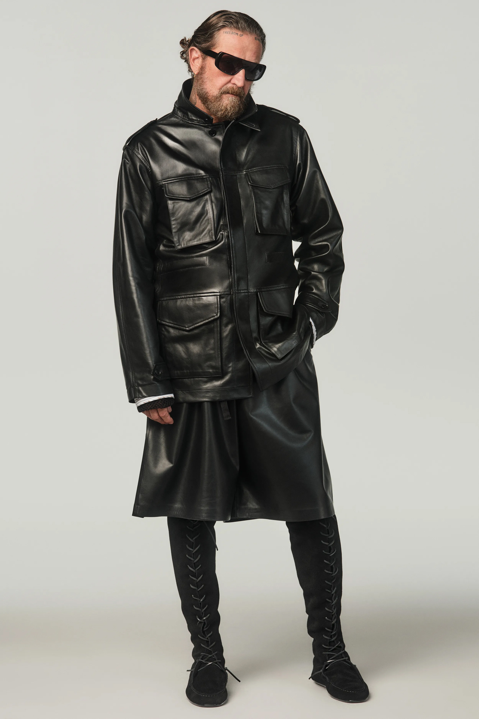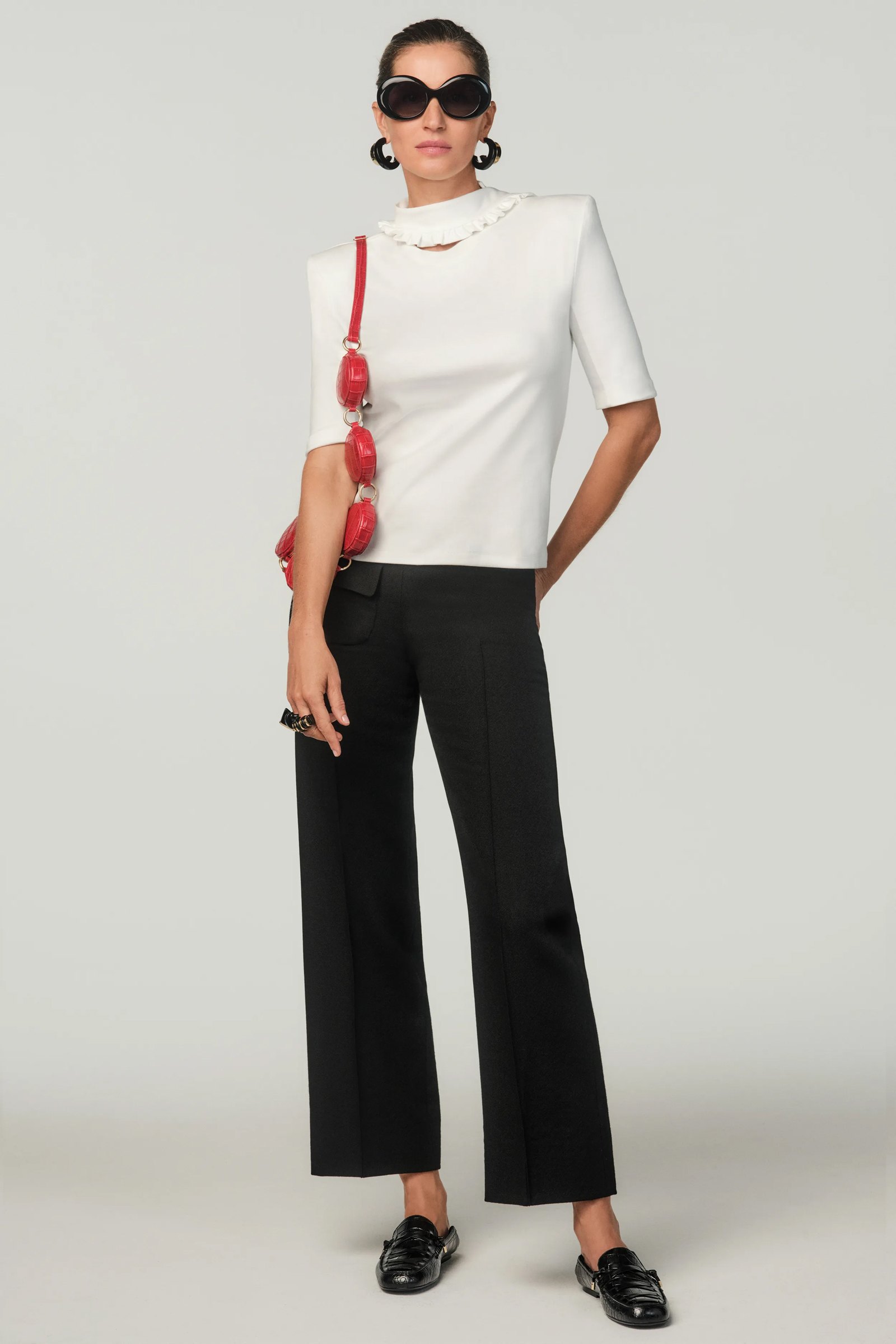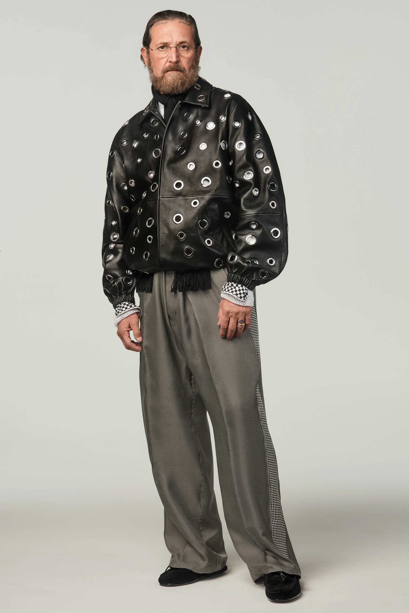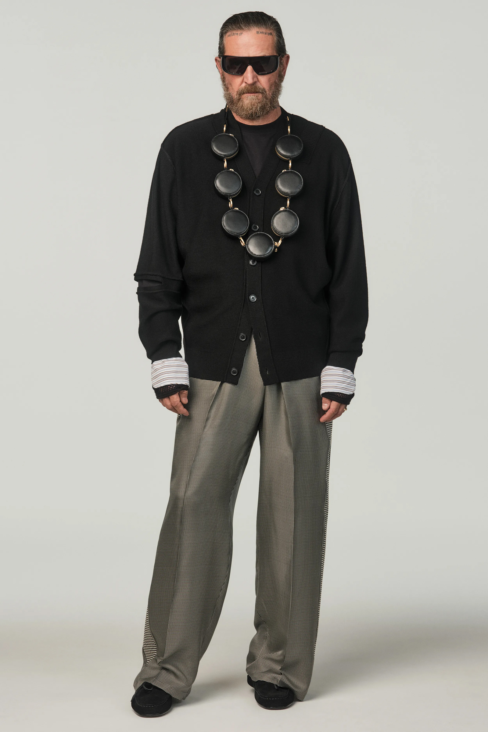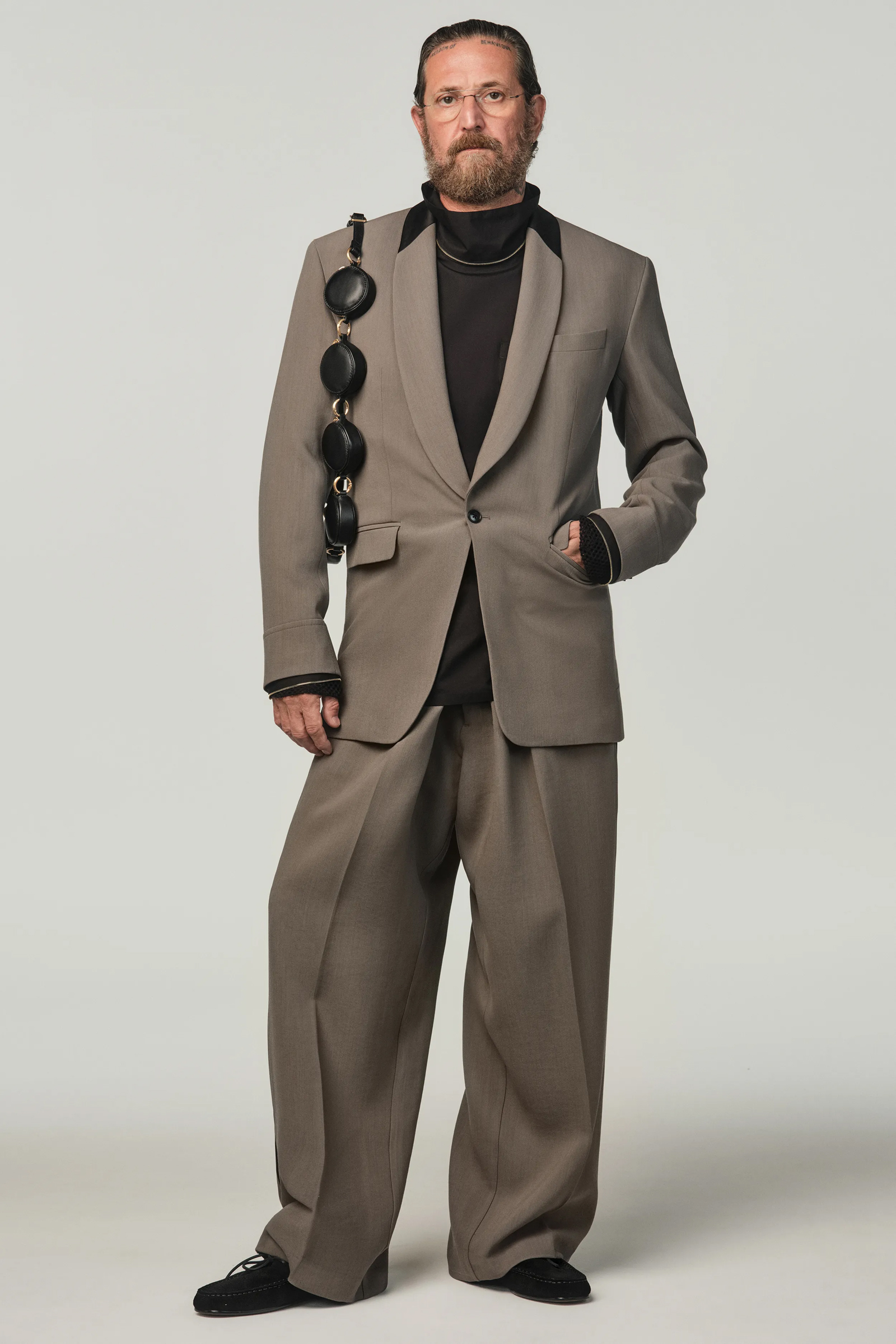 Per gli item maschili Stefano Pilati ha scelto di puntare su camicie che presentano rouches in alternanza a dolcevita più formali. Alle scarpe, che spaziano dai mocassini in suede o in pelle agli stivali cuissardes pensati sia per la donna che per l’uomo, si aggiungono gioielli che con i riflessi oro risultano perfetti per giocare ancora con il contrasto. Negli accessori è poi ricorrente il simbolo del cerchio, una forma che non ha né inizio né fine e che si presenta come fil rouge di tutta la collezione.