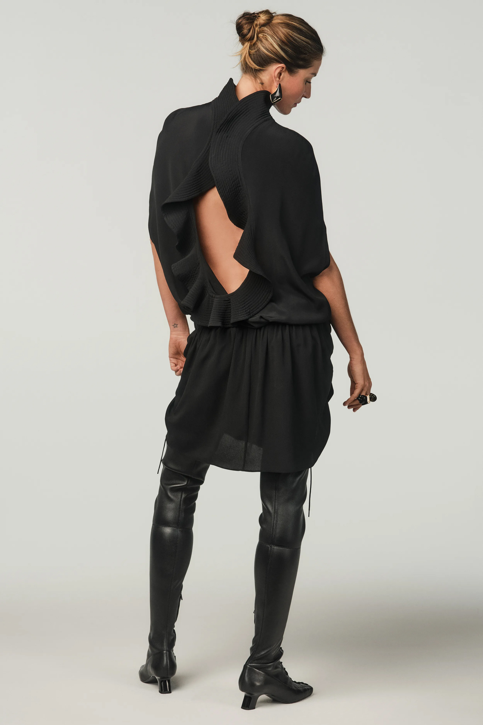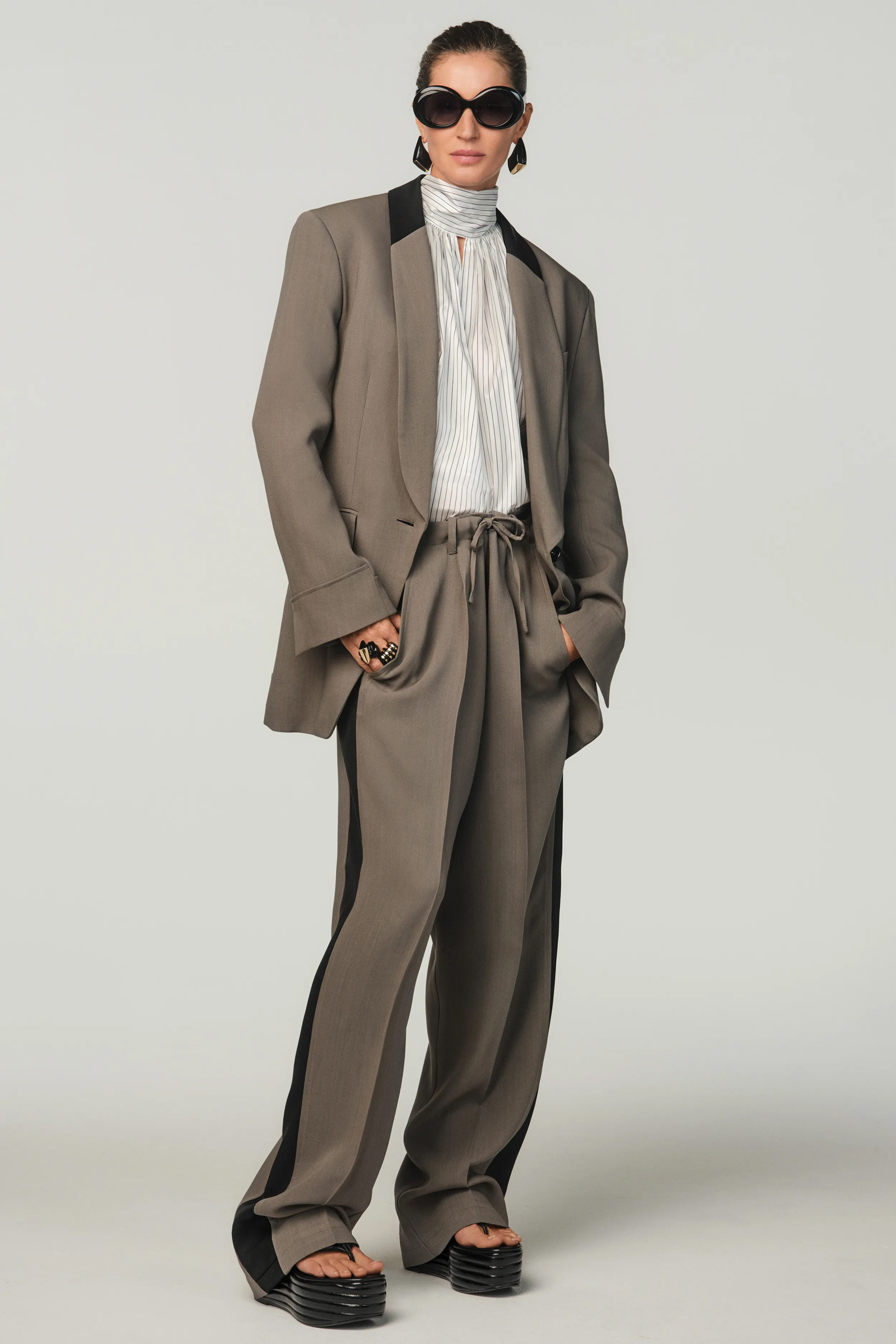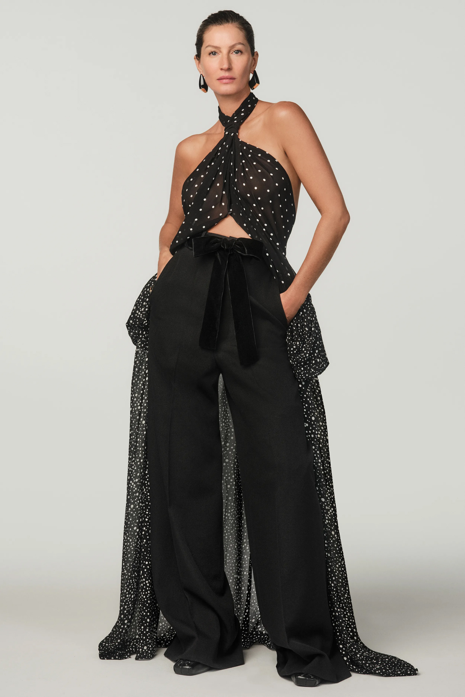 A dominare la capsule, composta da più di cento pezzi che attraversano i decenni e traggono ispirazione dagli anni Sessanta fino ai Duemila, sono sicuramente il nero e un mix tra raffinatezza e sartorialità. Non mancano però tocchi di colori e fantasie, oltre a tessuti fluidi che si contrappongono ai tagli più rigidi.