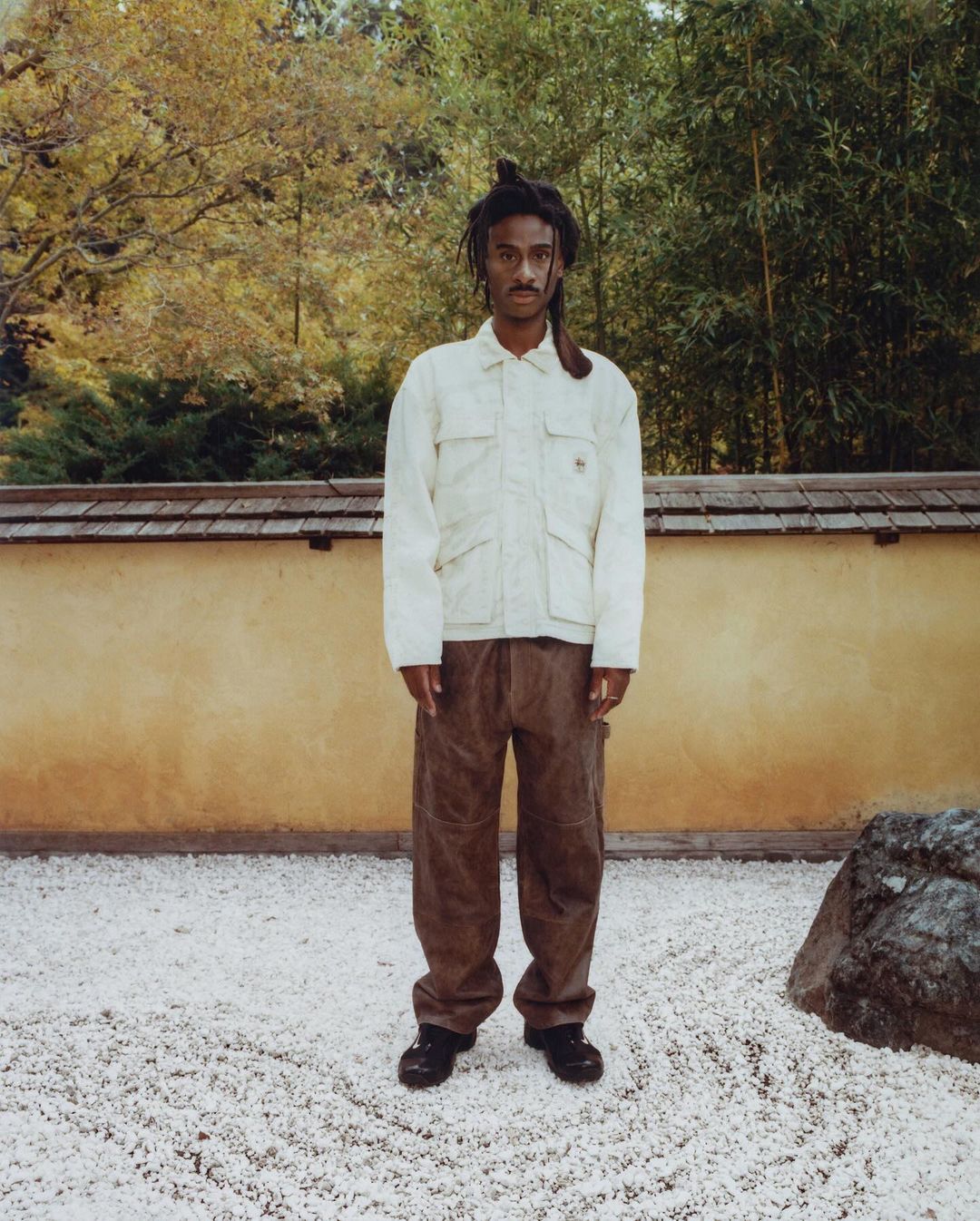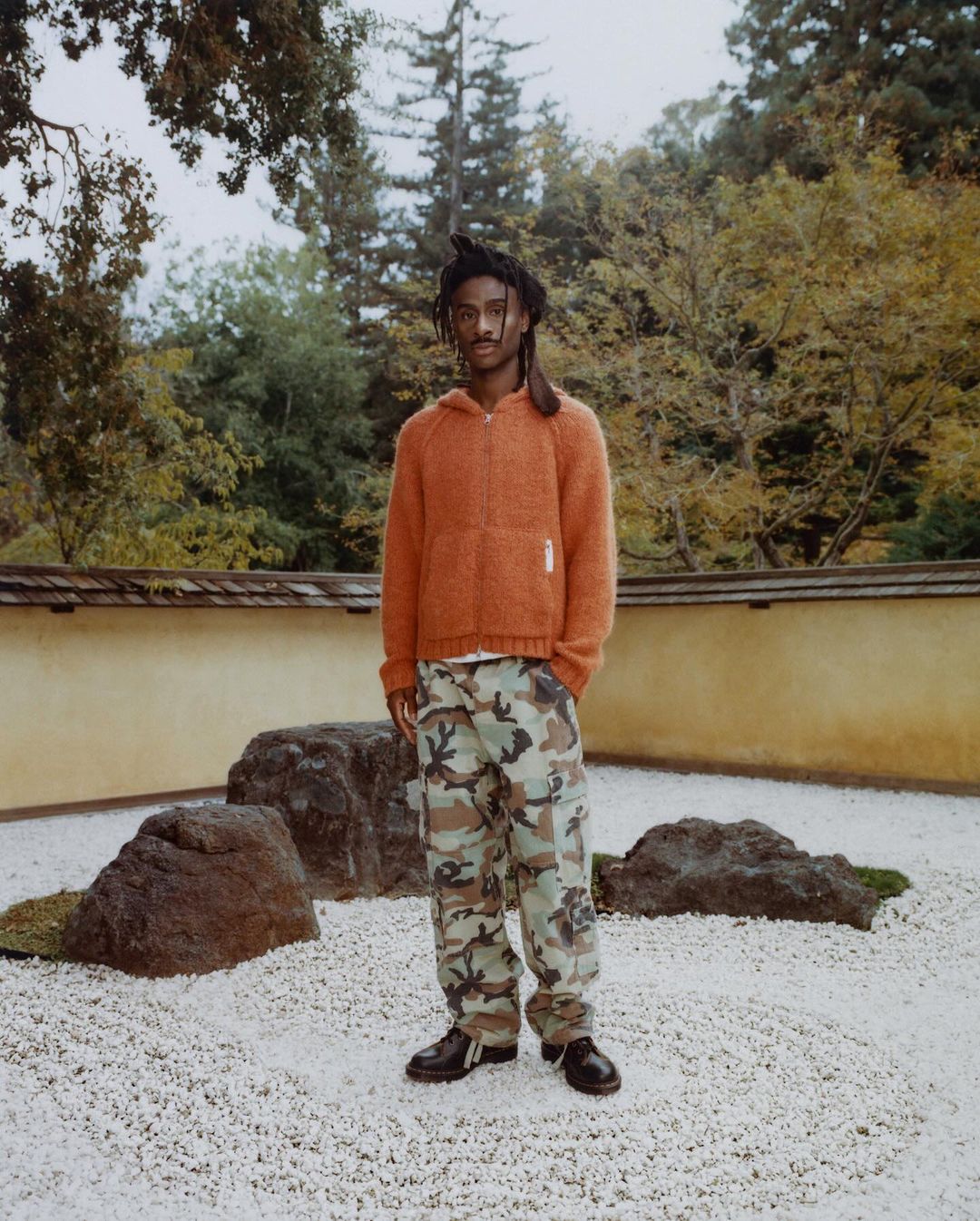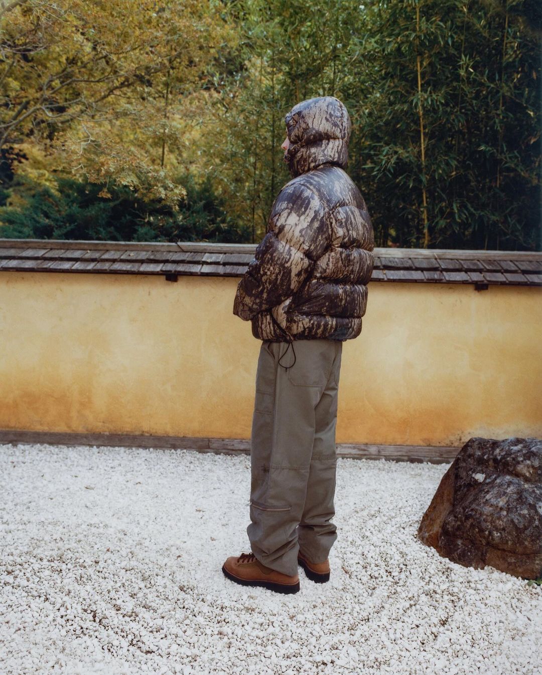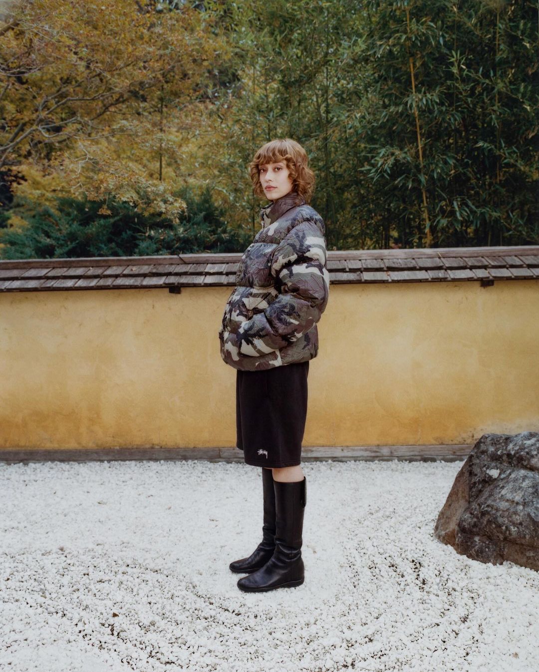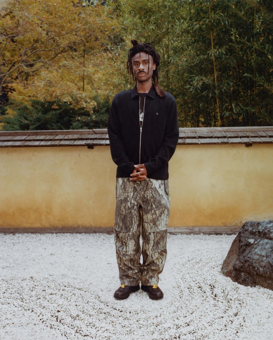 L’attenzione, ancora una volta, è immediatamente catturata dalla linea di capispalla, che si compone di alcuni dei simboli di Stüssy, come ad esempio i piumini in nylon, i lunghi cappotti a quadri in mohair, bomber in morbido shearling e chore coat che richiamano l’abbigliamento workwear. La linea holiday 2023 di Stüssy, inoltre, porta con sé l’iconico pattern “Real Trees” che si esprime su pantaloni e giacche da lavoro, accanto a fantasie camouflage e animalier.