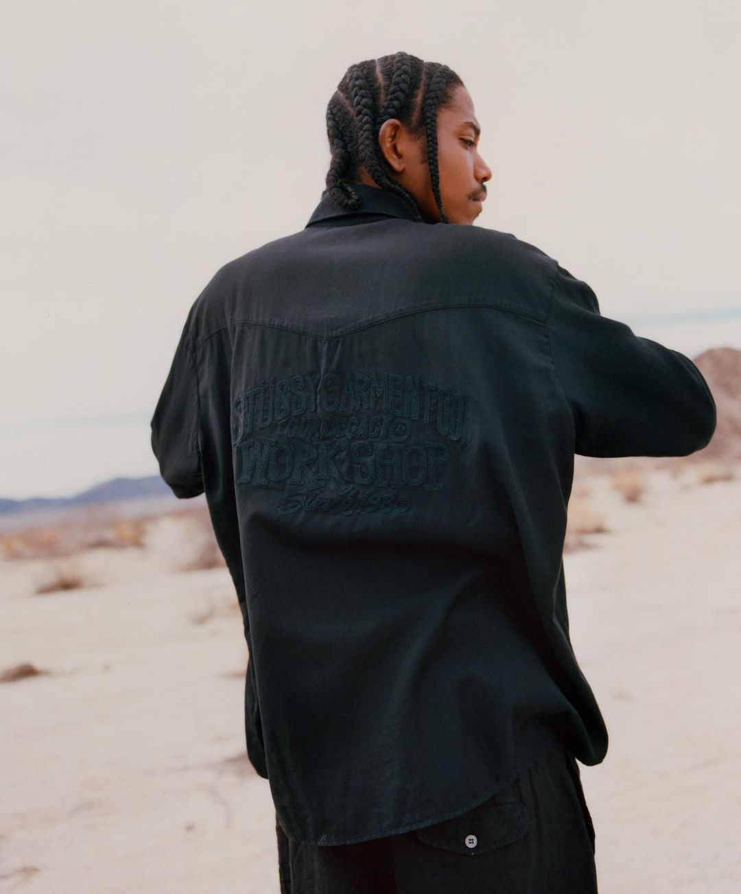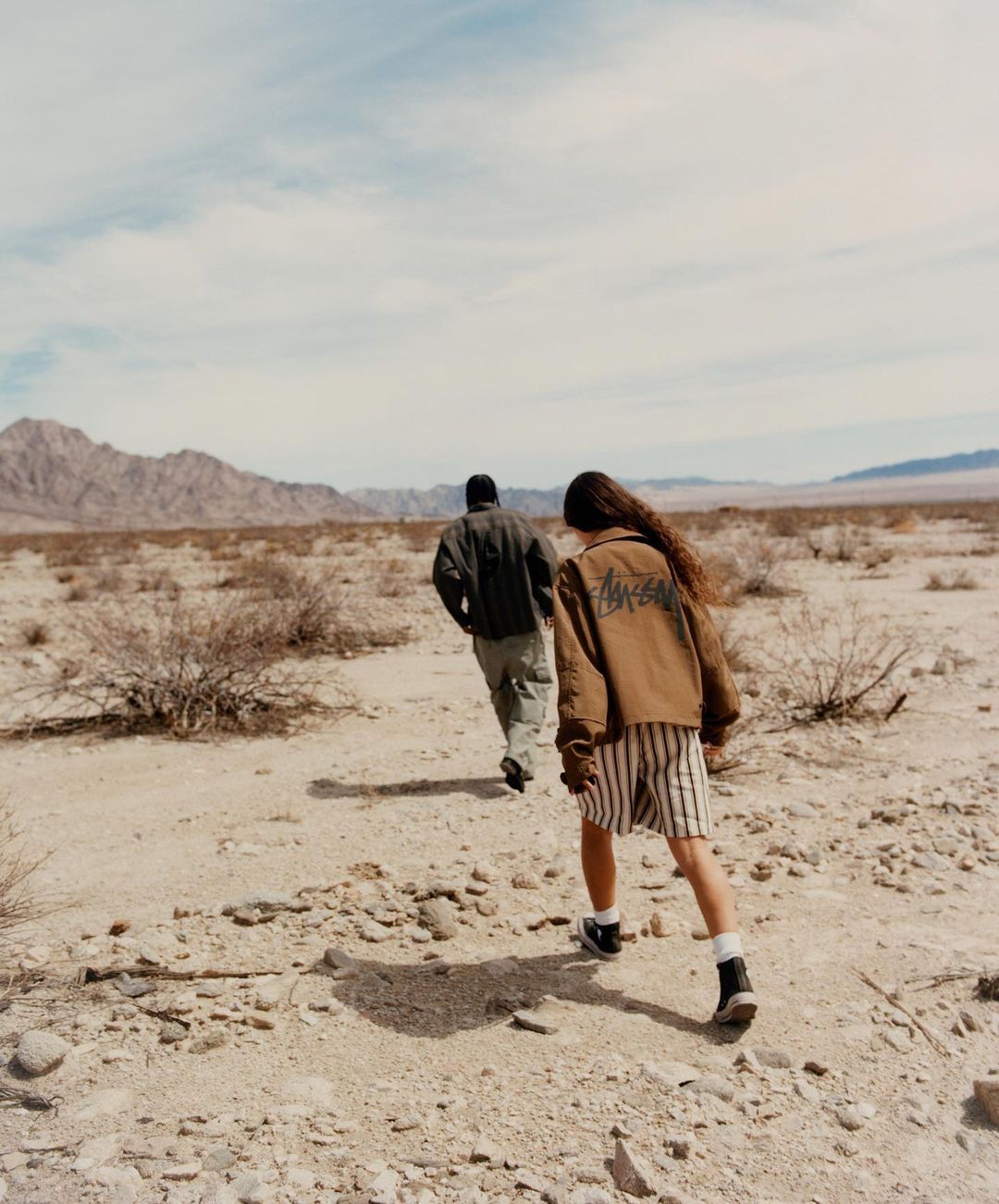 Nelle immagini condivise sugli account Instagram di entrambe le realtà, si può osservare come i capi presenti all’interno della nuova collezione siano fortemente orientati alla celebrazione di vibe estive, con uno shooting interamente ambientato in un paesaggio desertico. Nello specifico, sono state svelate le foto di alcuni capi rientranti nella proposta, tra cui un maglione con doppia iconografia in caratteri swirly, una camicia nera con bottoni d’argento, pantaloni wide fit, work jacket e felpe con logo stampato.