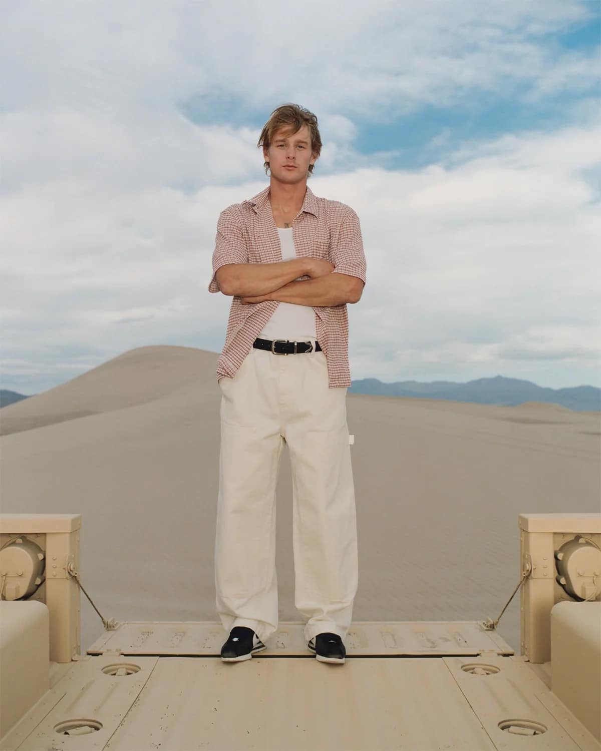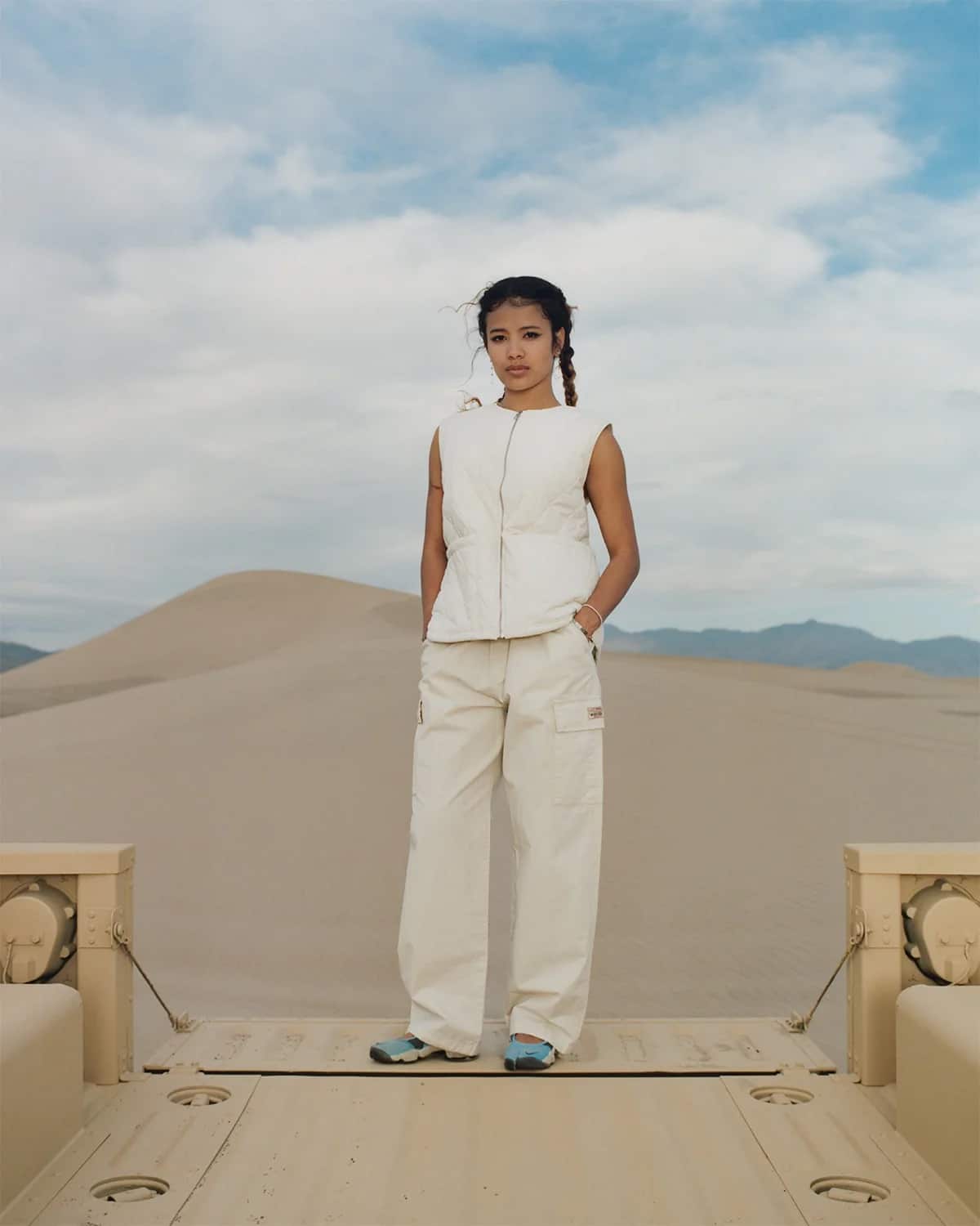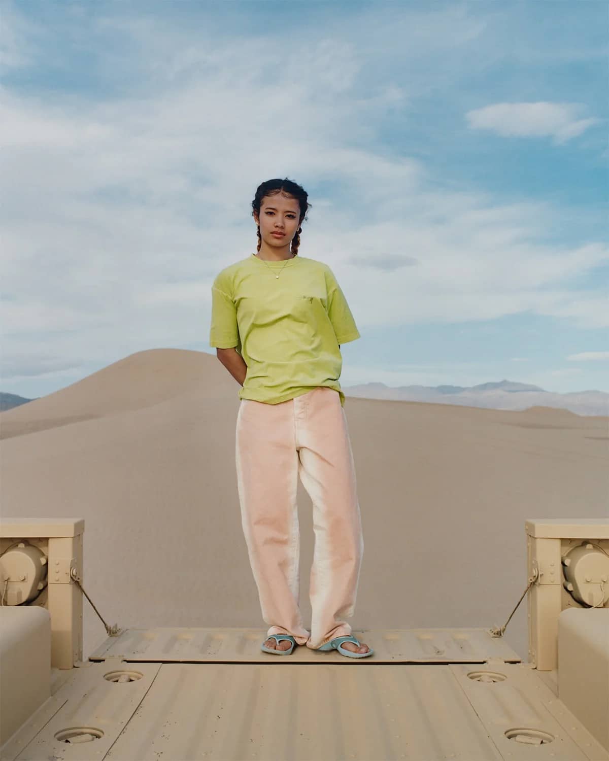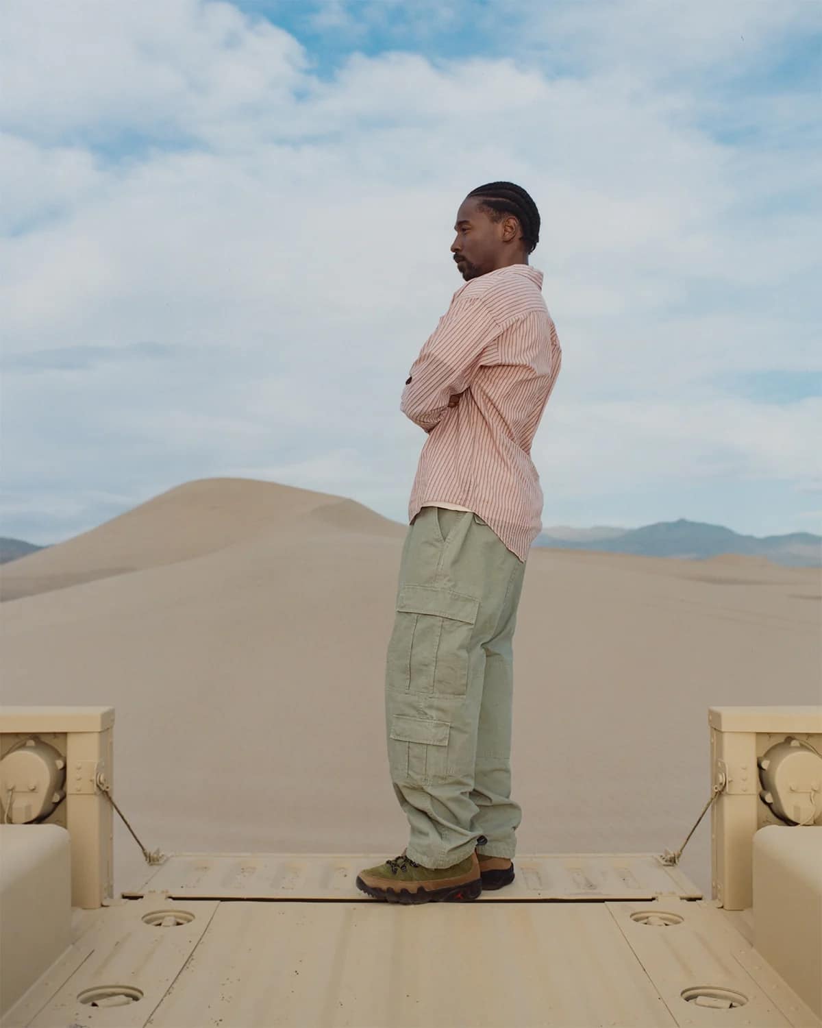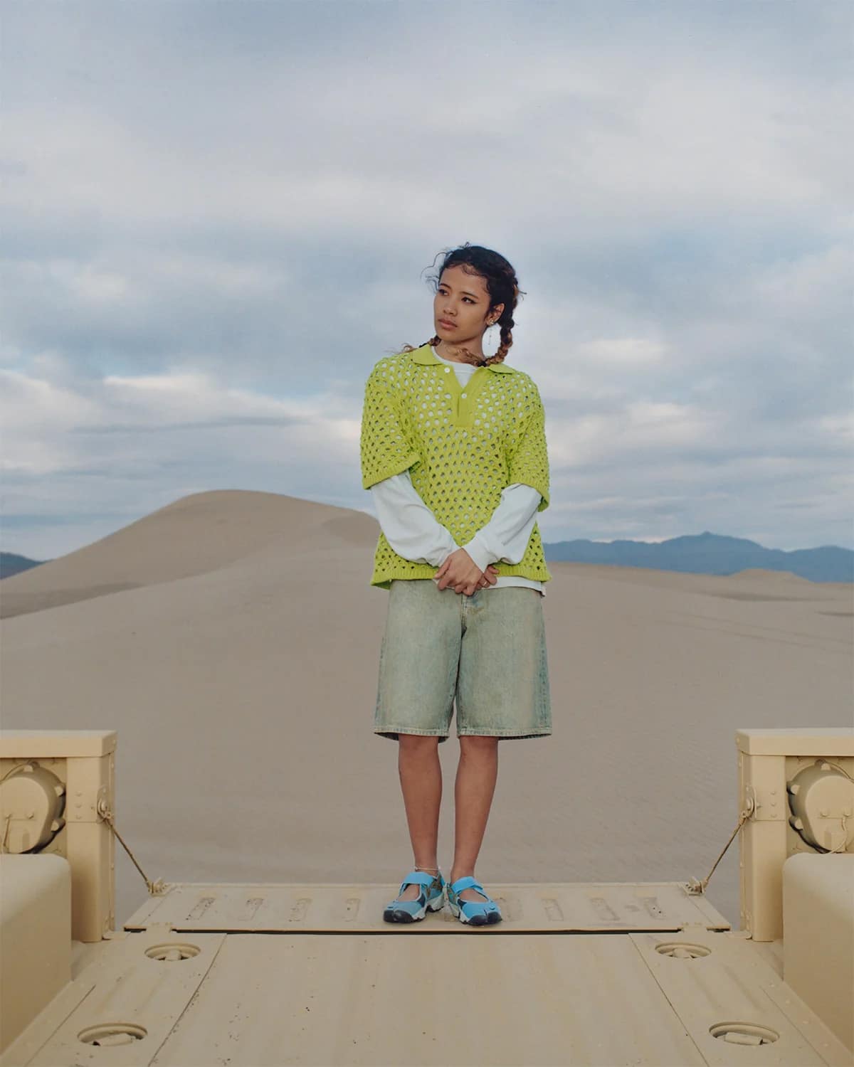 Le immagini della campagna dedicata alla stagione estiva rendono protagonista una cornice scenografica desertica con una passerella in primo piano. È proprio la scelta del contesto fotografico che fornisce il perfetto contrasto neutro con la sorprendente tavolozza cromatica che caratterizza la proposta. Nello specifico, Stüssy ha inserito all’interno della linea capi di diversa estrazione, passando dall’utilitywear al casualwear, senza sacrificare le iconiche radici surfwear che hanno contraddistinto i primissimi anni di operato del brand.