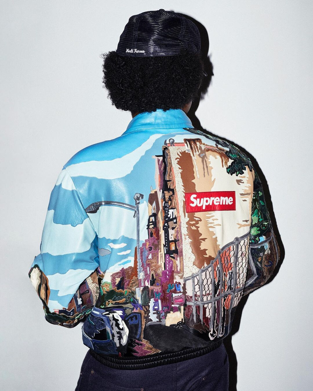 Come da tradizione, Supreme ha anticipato l'imminente arrivo della collezione Fall/Winter 2022 attraverso una foto teaser condivisa sui propri canali social ufficiali: il brand newyorkese ha fatto ricorso al suo profilo Instagram per mostrare agli appassionati di tutto il mondo quale sarà il look dei primi capi che compariranno all'interno della linea stagionale. Nell'immagine pubblicata dal marchio si può osservare la presenza di una giacca di pelle con stampa all-over: si tratta nello specifico di un dipinto che raffigura quello che potrebbe essere il marciapiede di una città europea, caratterizzata dalla presenza di caseggiati colorati, alberi e un cielo limpido. Immancabile la comparsa del classico box logo rosso riportato nella parte superiore destra del retro del capo. Si ipotizza inoltre che l'item in questione possa essere il risultato di una collaborazione con il pilota automobilistico britannico Lewis Hamilton: il prezzo di acquisto stimato si aggirerebbe attorno ai 15.000 dollari.Il modello fotografato nel teaser indossa poi altri due articoli presentati in anteprima, di cui un denim con lavaggio scuro e un cappello a rete con stampa sul retro della frase “World Famous”, che il brand applica storicamente ad una vasta serie di capi da ormai innumerevoli stagioni.La pubblicazione del teaser precede tradizionalmente l'unveiling del lookbook ufficiale, che avverrà lunedì prossimo, e il tanto atteso debutto del primo drop nella giornata di giovedì.