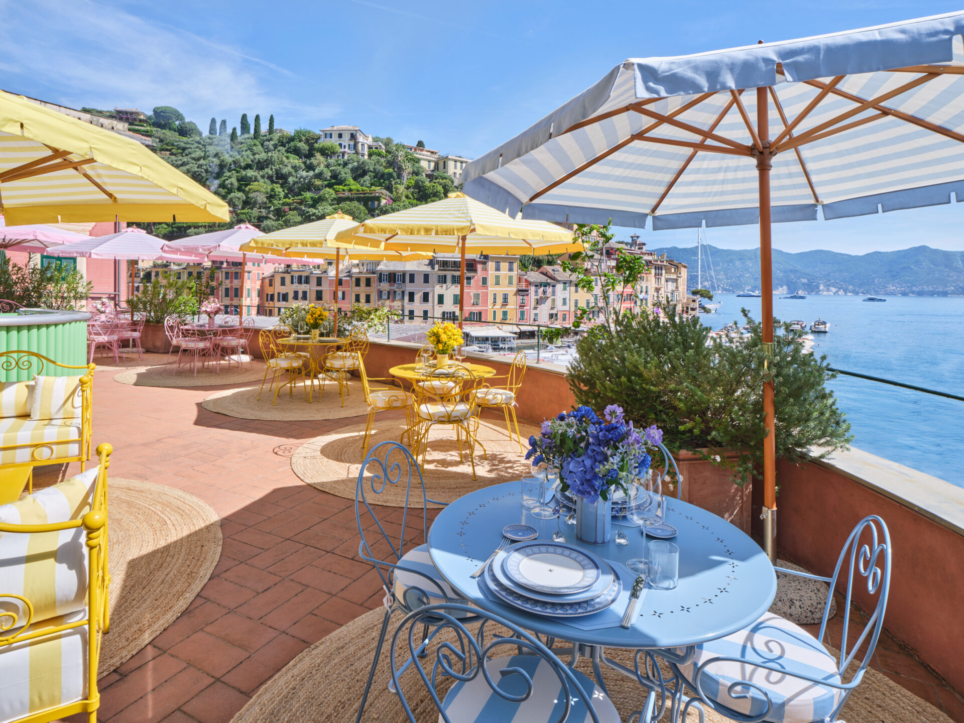 Tra ombrelloni a righe colorate (proposti nelle quattro nuance signature del brand ), dettagli scintillanti e le porcellane della collezione Swarovski x Rosenthal, disegnata dalla direttrice creativa Giovanna Engelbert, la terrazza è stata completamente trasformata così da offrire ai clienti un’atmosfera tipicamente à la Dolce Vita.