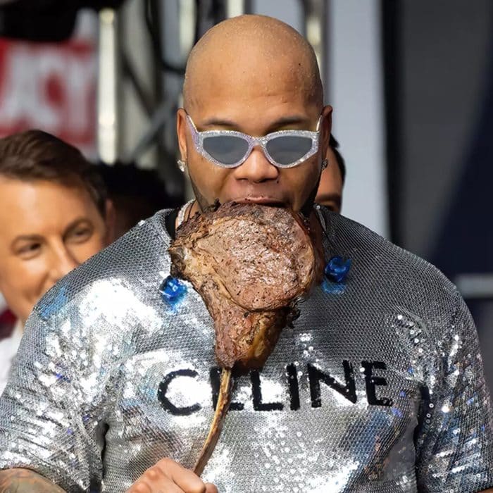 Flo Rida gusta una bistecca Tomahawk vestito Celine