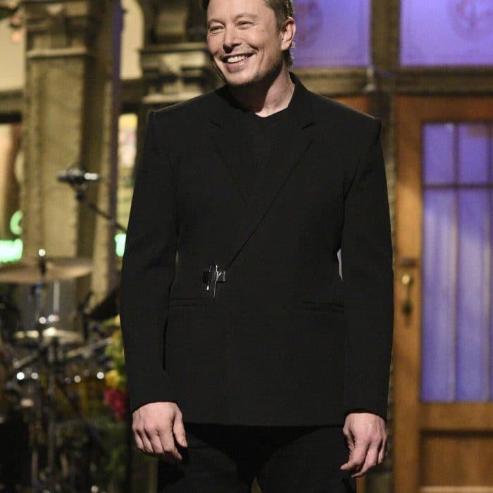 Elon Musk indossa un abito Givenchy al Saturday Night Live