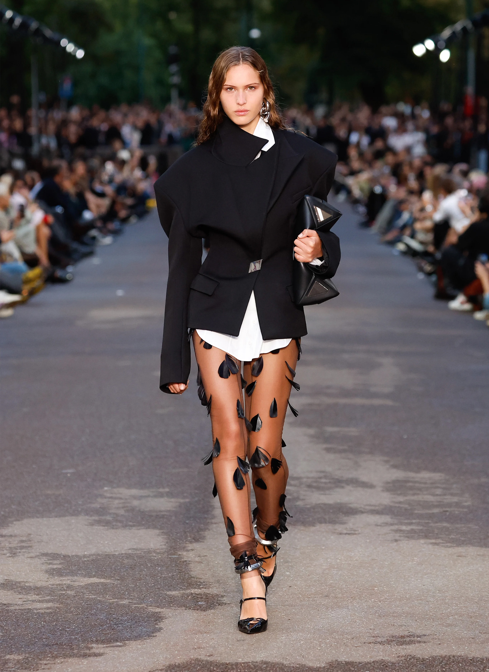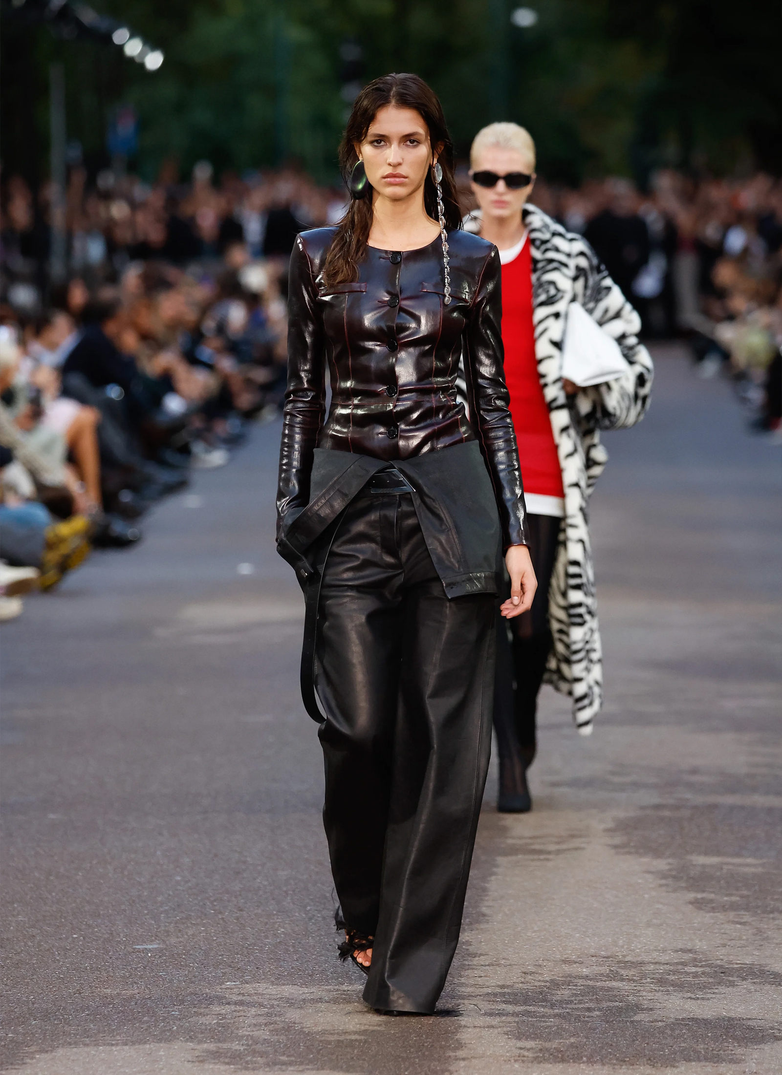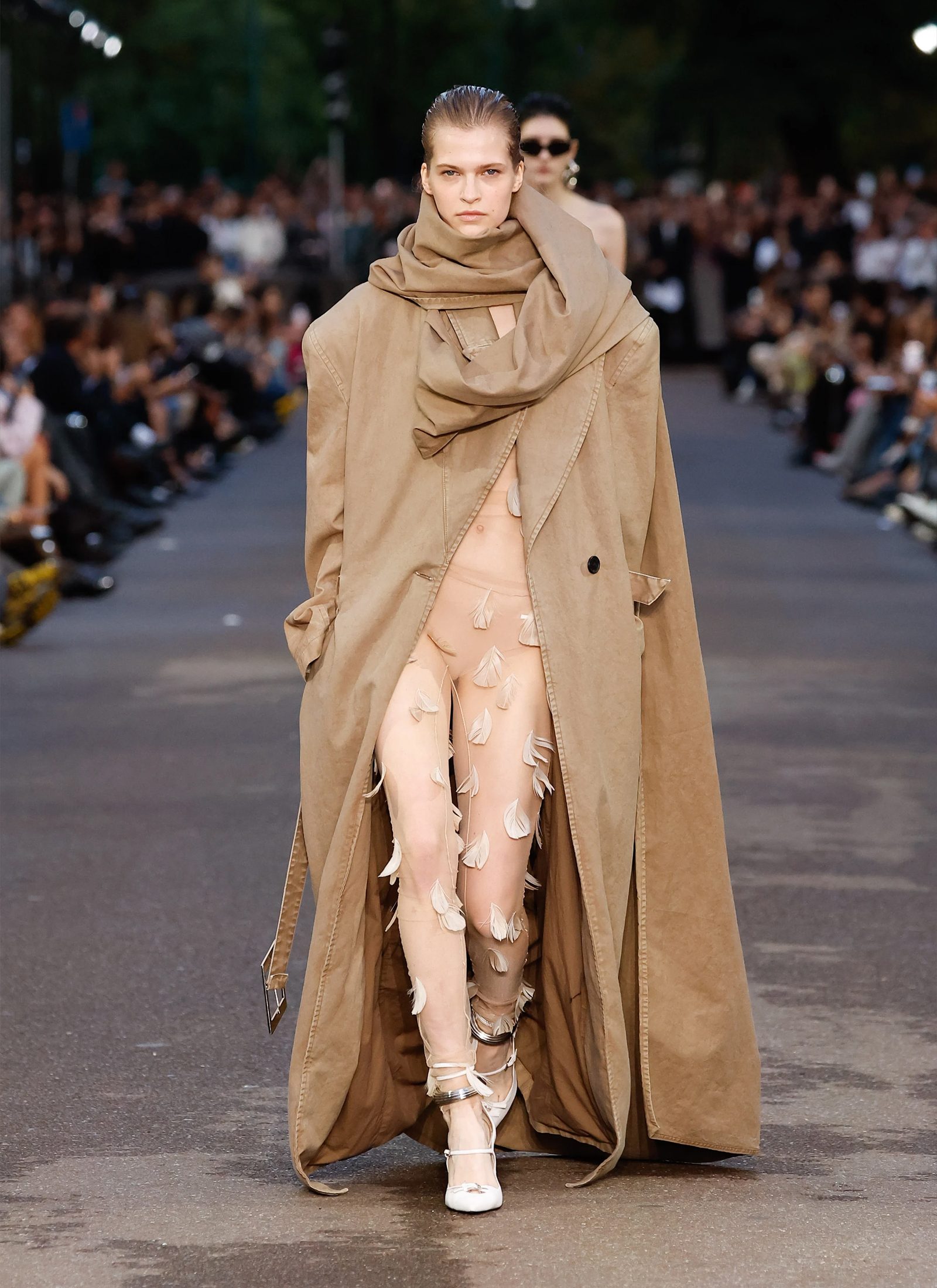 Nonostante le incertezze del meteo, la passerella è stata allestita in pieno centro città, proprio per strada, in cui divani di pelle, ciascuno diverso dall’altro, hanno delimitato il corridoio che di lì a poco sarebbe stato attraversato dalle modelle con indosso i capi della collezione Spring/Summer 2024 di The Attico. Il tema della passerella, il cui invito è stata una tazzina da caffè brandizzata, era mostrare un altro volto, quello che, lontano dalle feste sui rooftop e nei loft milanesi che ha caratterizzato il brand, cammina fieramente per strada, con capi in grado di adattarsi perfettamente al lifestyle veloce di Milano.