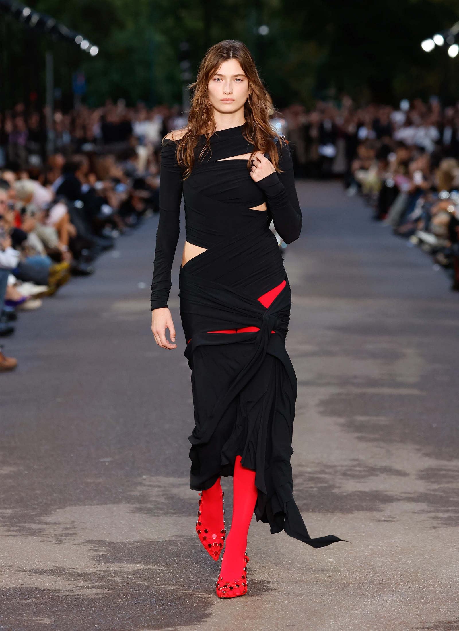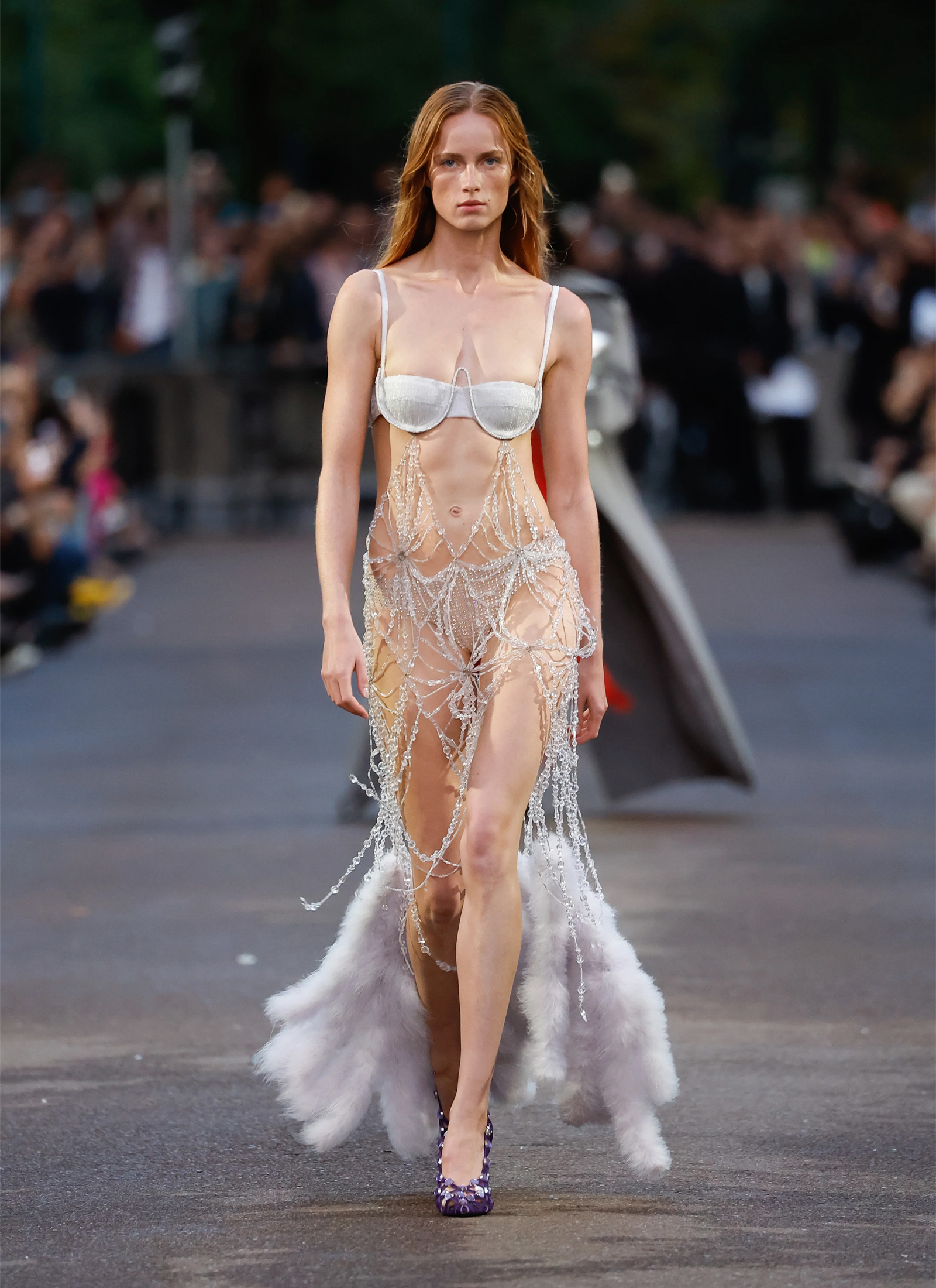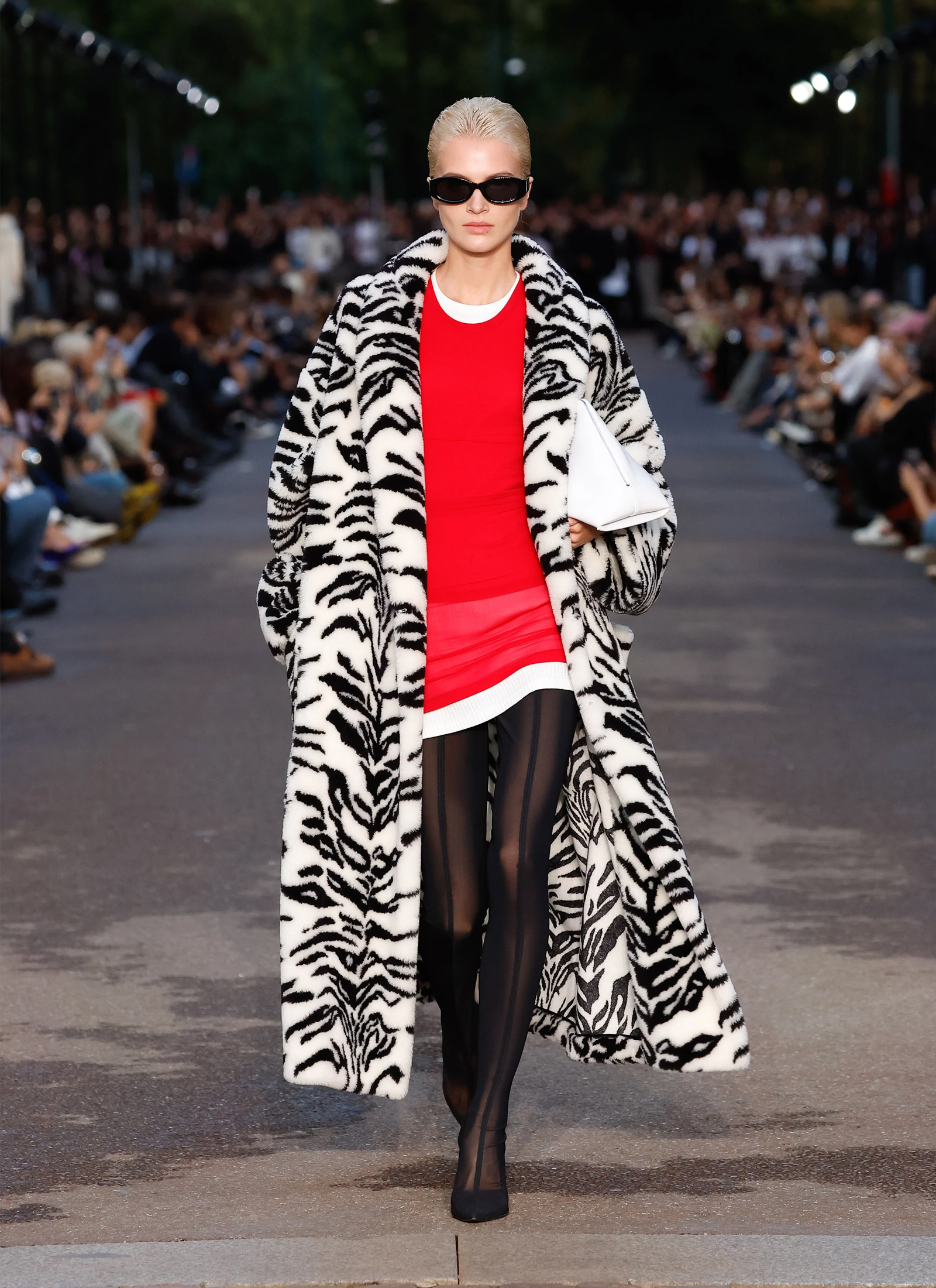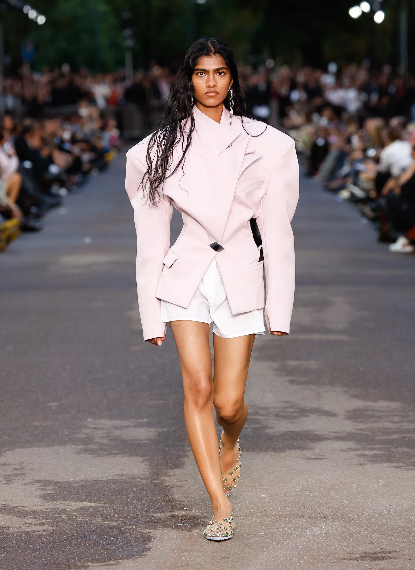 Nonostante le incertezze del meteo, la passerella è stata allestita in pieno centro città, proprio per strada, in cui divani di pelle, ciascuno diverso dall’altro, hanno delimitato il corridoio che di lì a poco sarebbe stato attraversato dalle modelle con indosso i capi della collezione Spring/Summer 2024 di The Attico. Il tema della passerella, il cui invito è stata una tazzina da caffè brandizzata, era mostrare un altro volto, quello che, lontano dalle feste sui rooftop e nei loft milanesi che ha caratterizzato il brand, cammina fieramente per strada, con capi in grado di adattarsi perfettamente al lifestyle veloce di Milano.