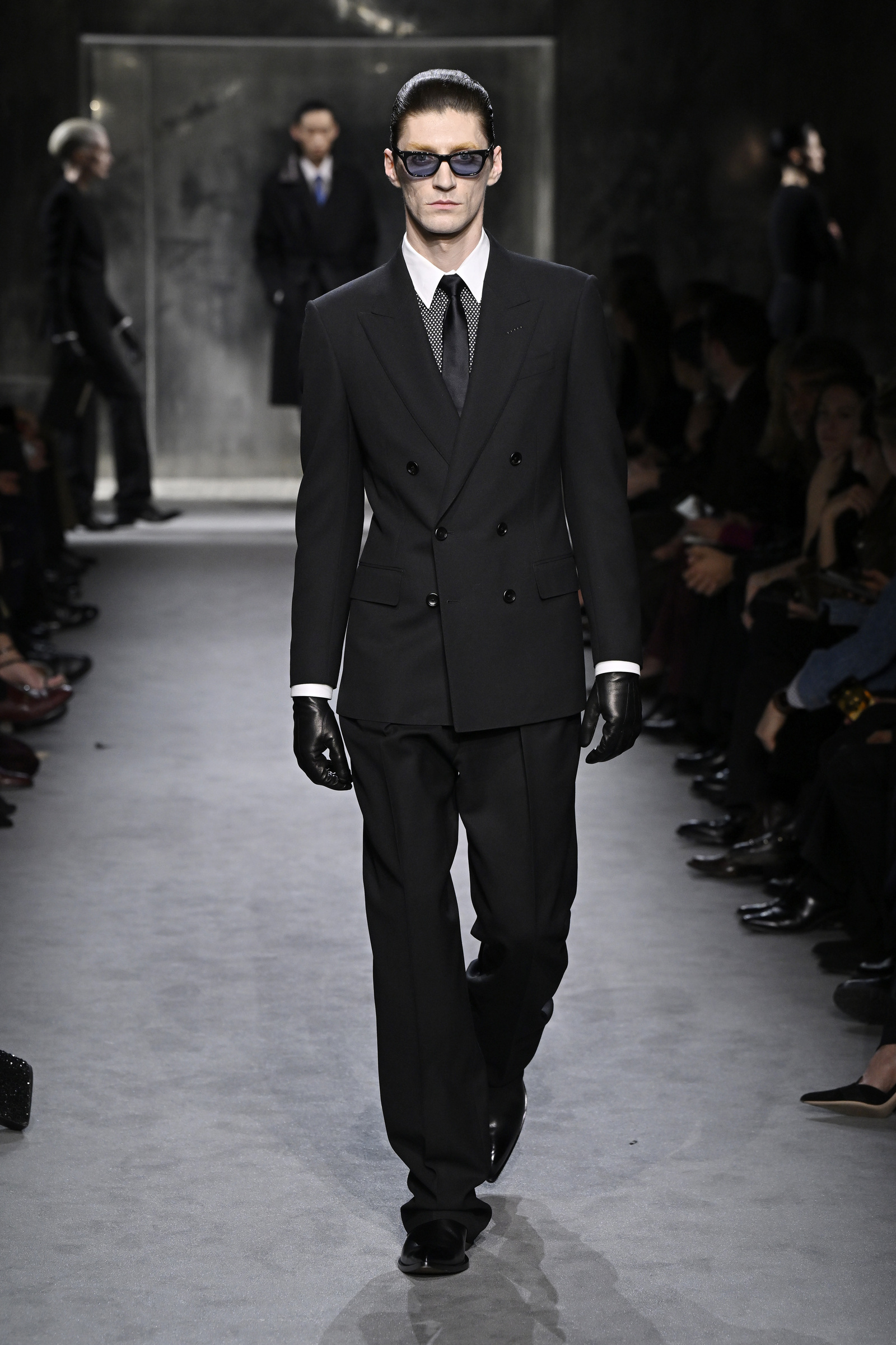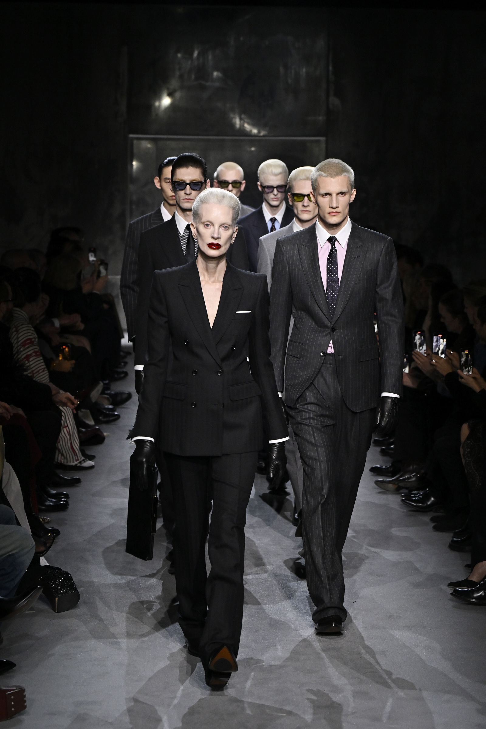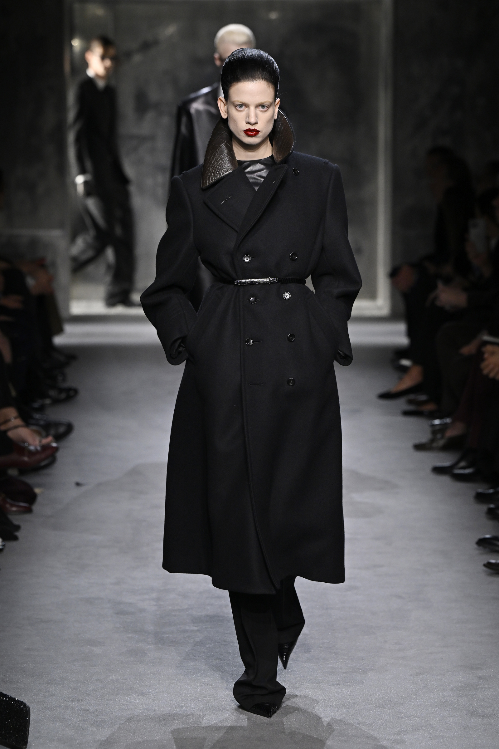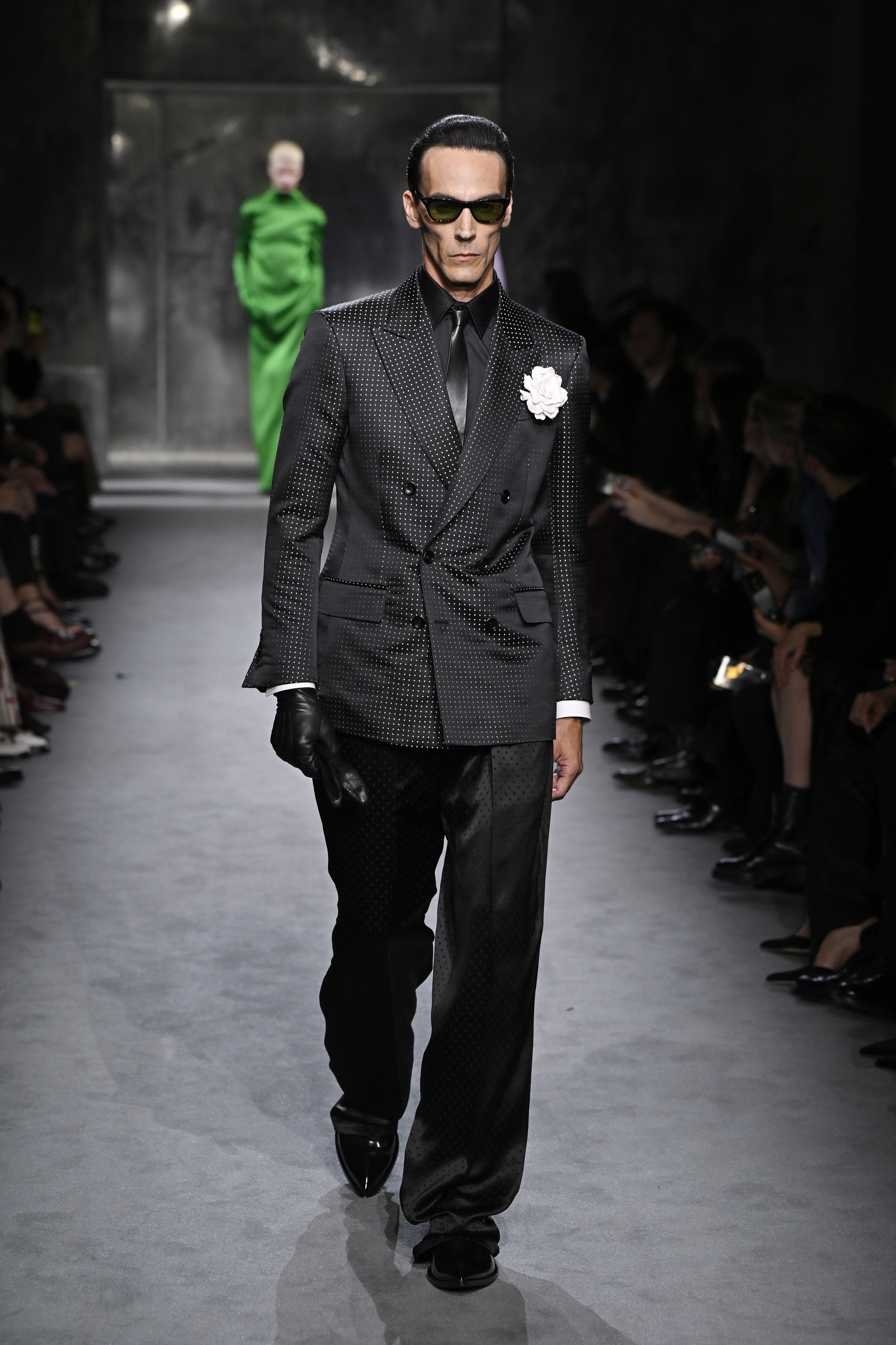 Un caloroso abbraccio chiude il défilé. Un gesto che suggella il successo della prima prova di Haider Ackermann alla guida del brand fondato nel 2005 da Tom Ford. Seduto nel front row, il designer texano si alza e stringe con spontaneità e approvazione Ackermann, arruolato lo scorso settembre per scrivere il nuovo capitolo del marchio oggi di proprietà di Estée Lauder. Un capitolo che parte (decisamente) con il piede giusto.