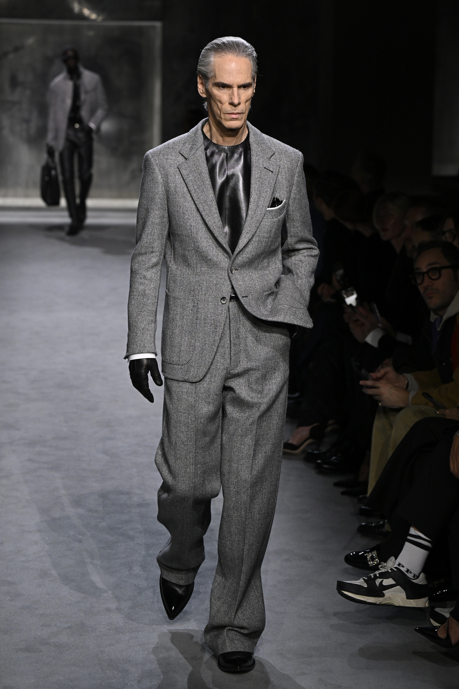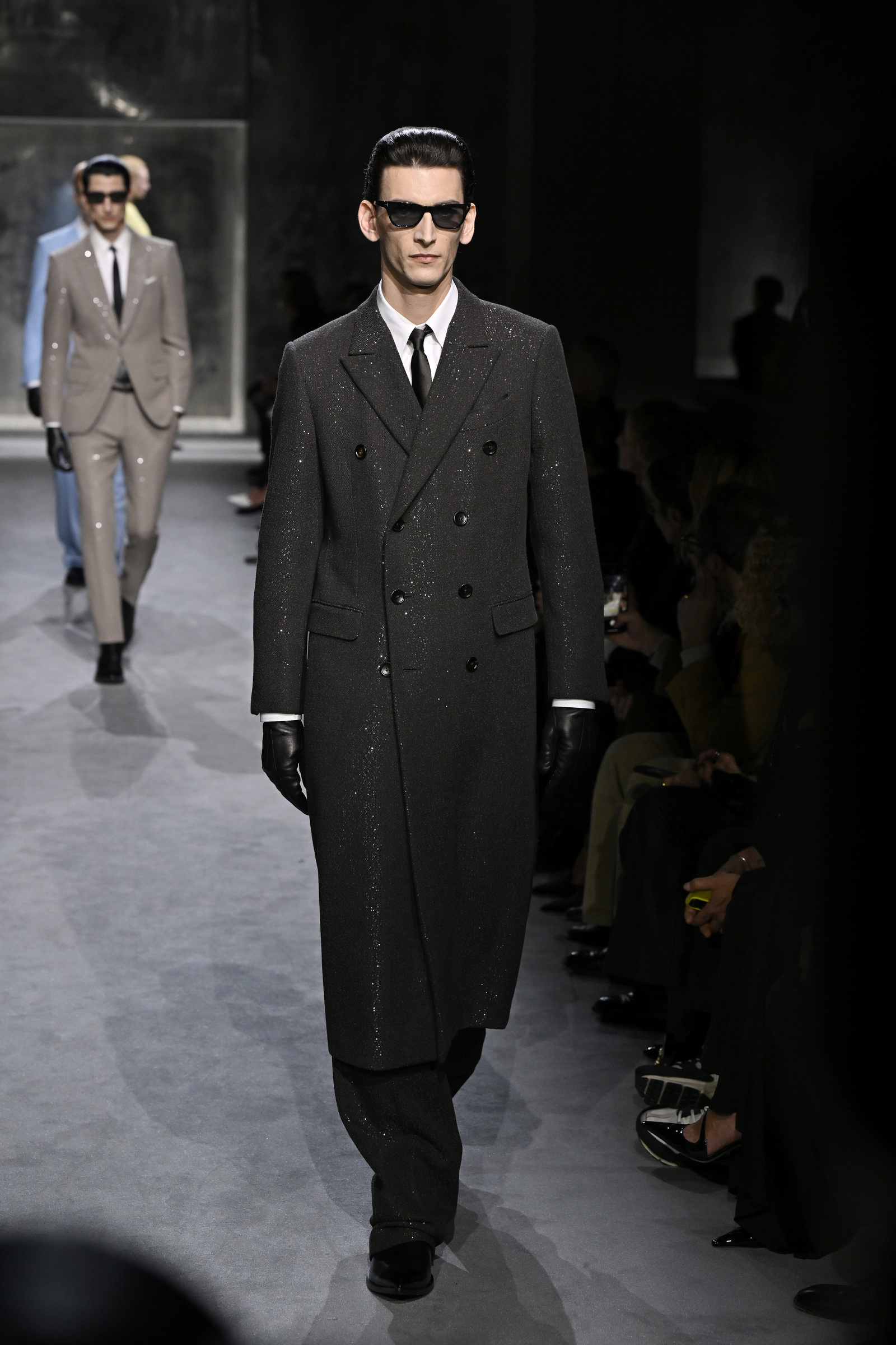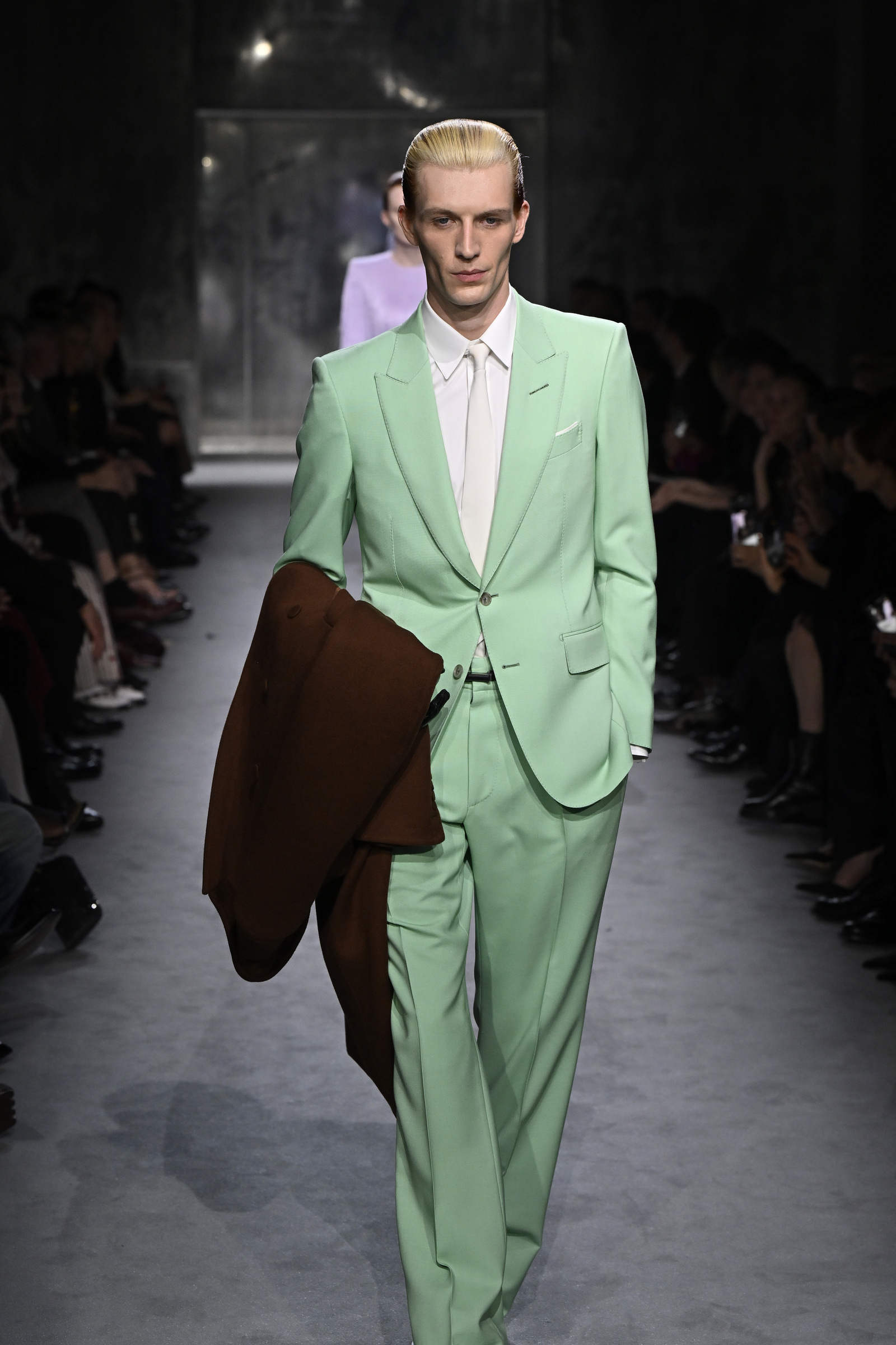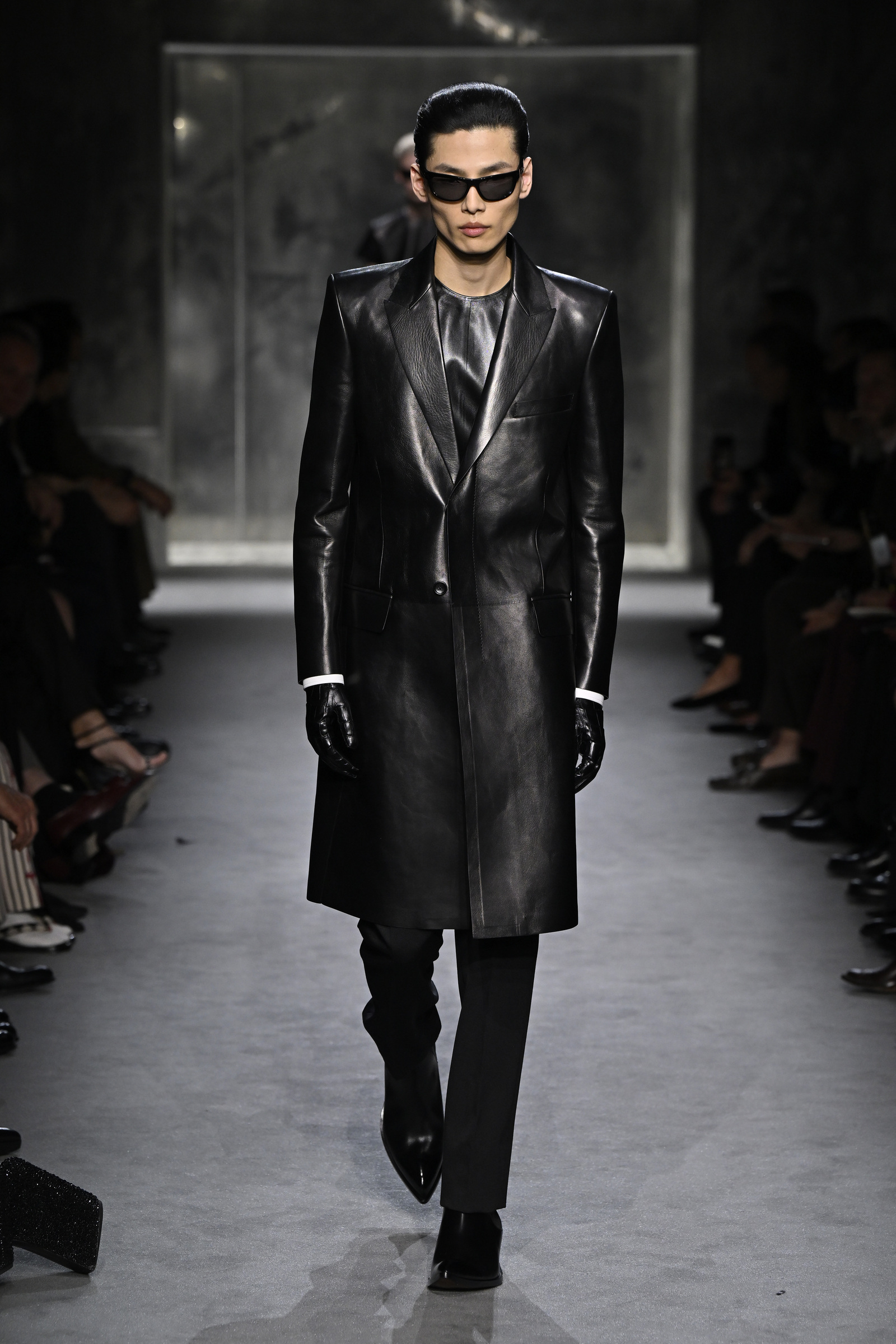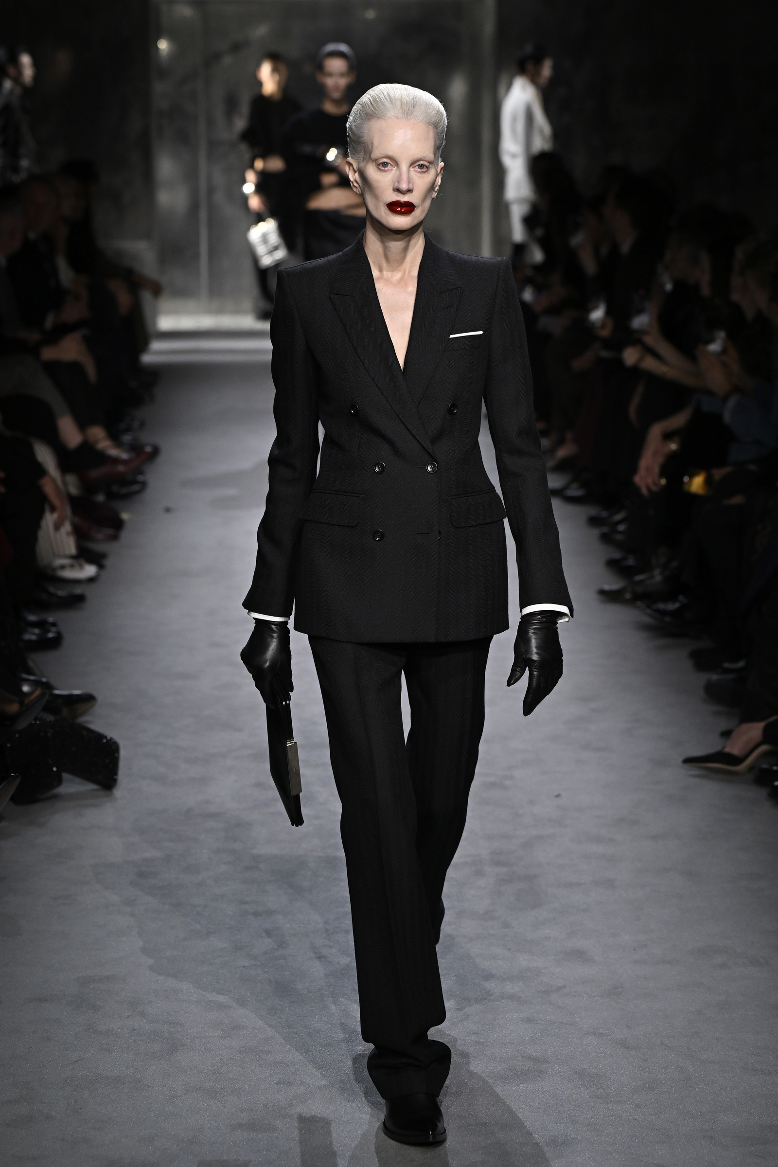 Un caloroso abbraccio chiude il défilé. Un gesto che suggella il successo della prima prova di Haider Ackermann alla guida del brand fondato nel 2005 da Tom Ford. Seduto nel front row, il designer texano si alza e stringe con spontaneità e approvazione Ackermann, arruolato lo scorso settembre per scrivere il nuovo capitolo del marchio oggi di proprietà di Estée Lauder. Un capitolo che parte (decisamente) con il piede giusto.