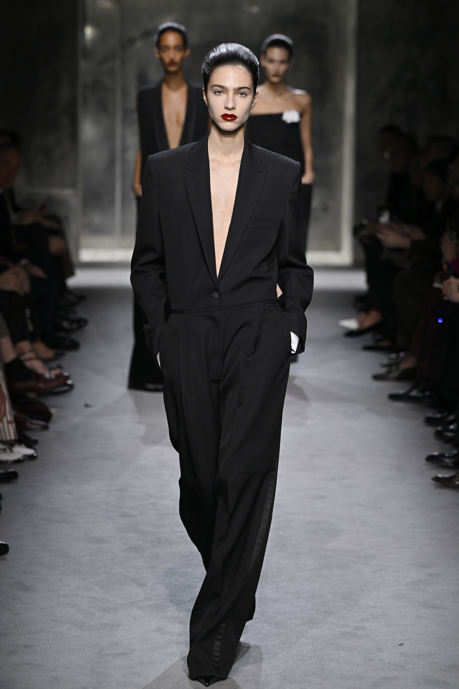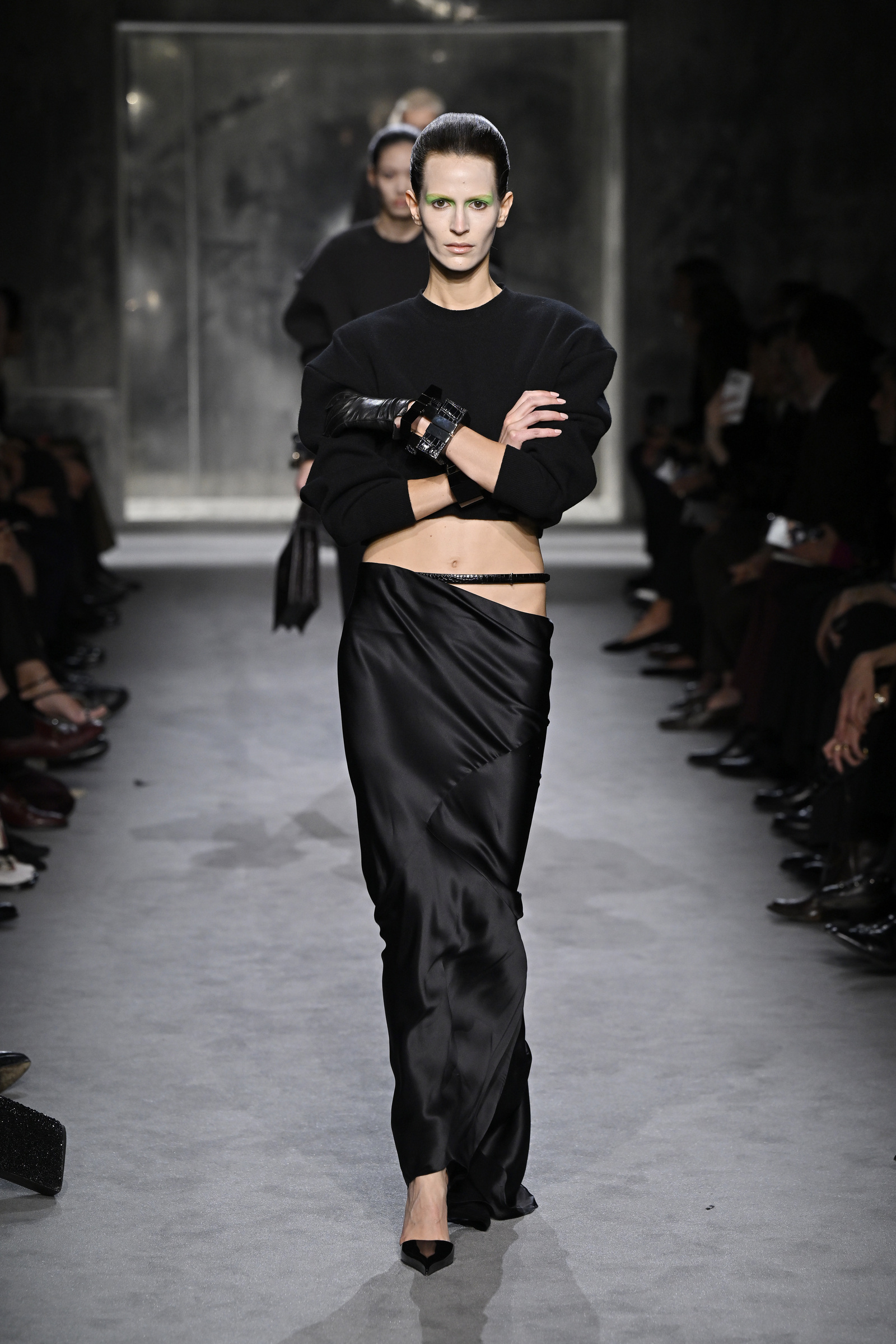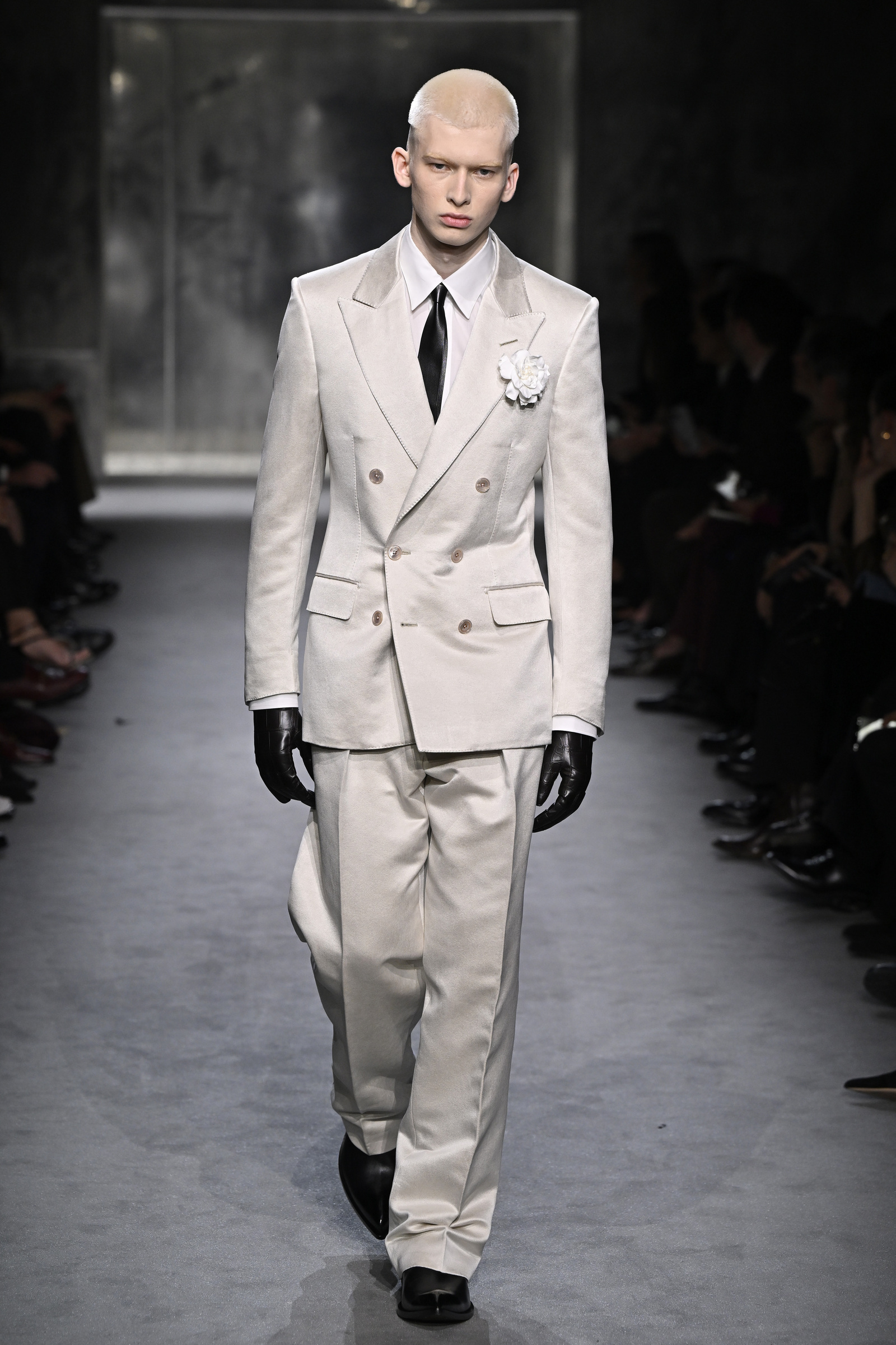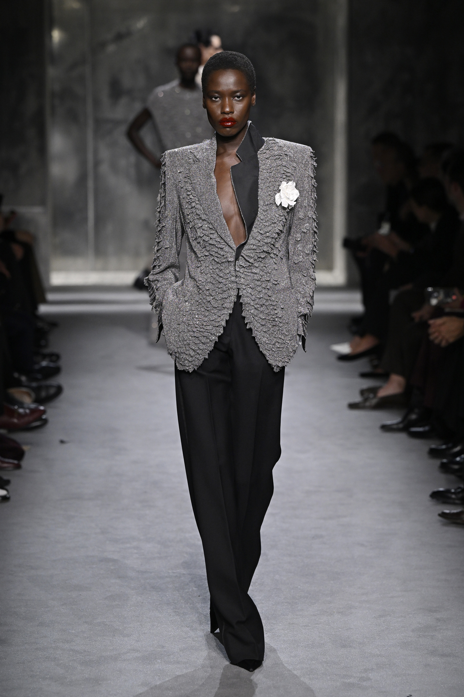 Un caloroso abbraccio chiude il défilé. Un gesto che suggella il successo della prima prova di Haider Ackermann alla guida del brand fondato nel 2005 da Tom Ford. Seduto nel front row, il designer texano si alza e stringe con spontaneità e approvazione Ackermann, arruolato lo scorso settembre per scrivere il nuovo capitolo del marchio oggi di proprietà di Estée Lauder. Un capitolo che parte (decisamente) con il piede giusto.
