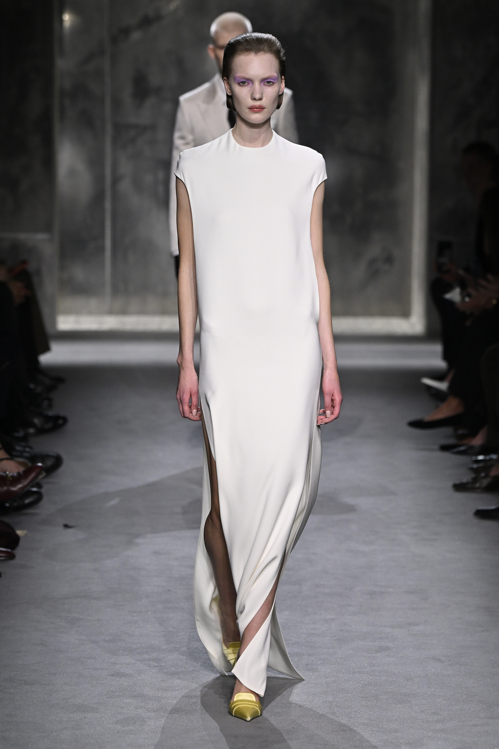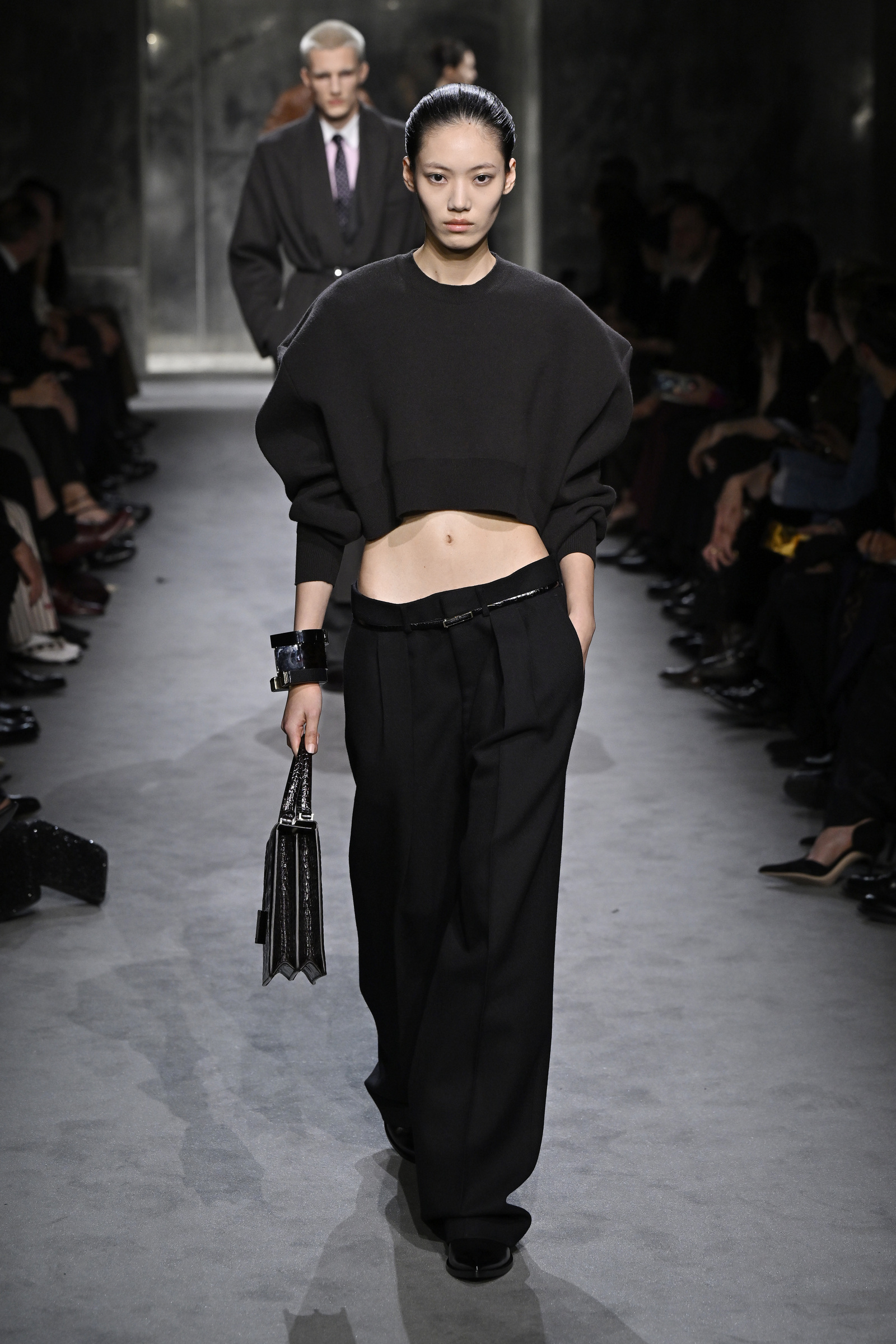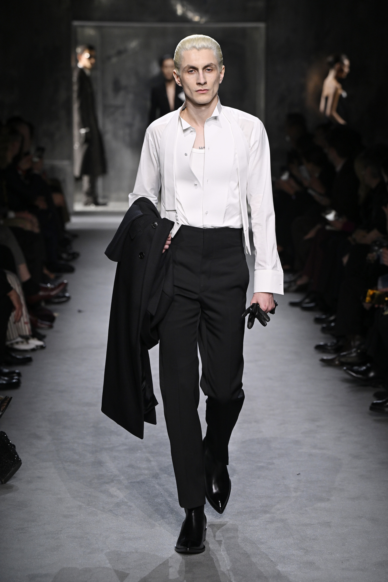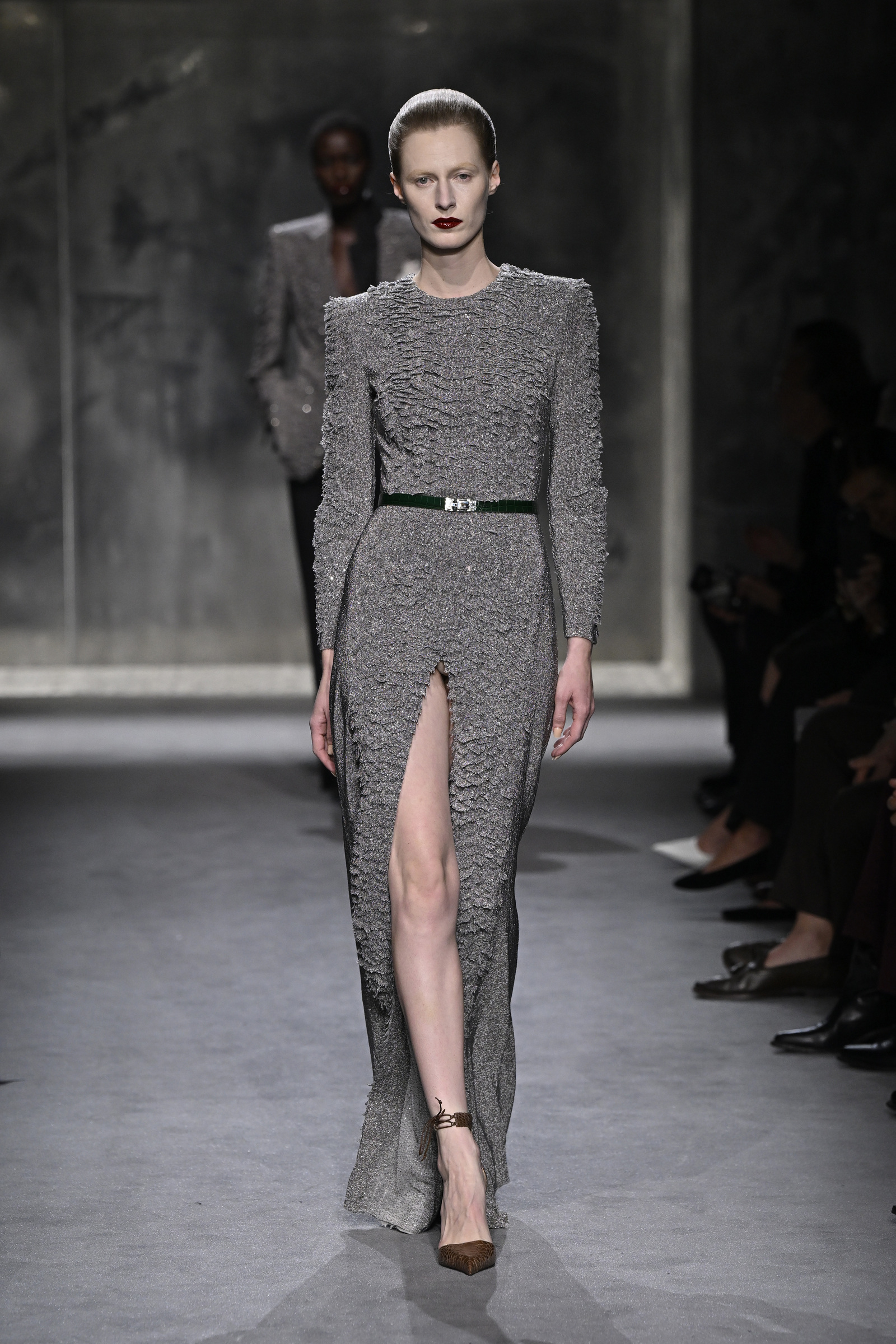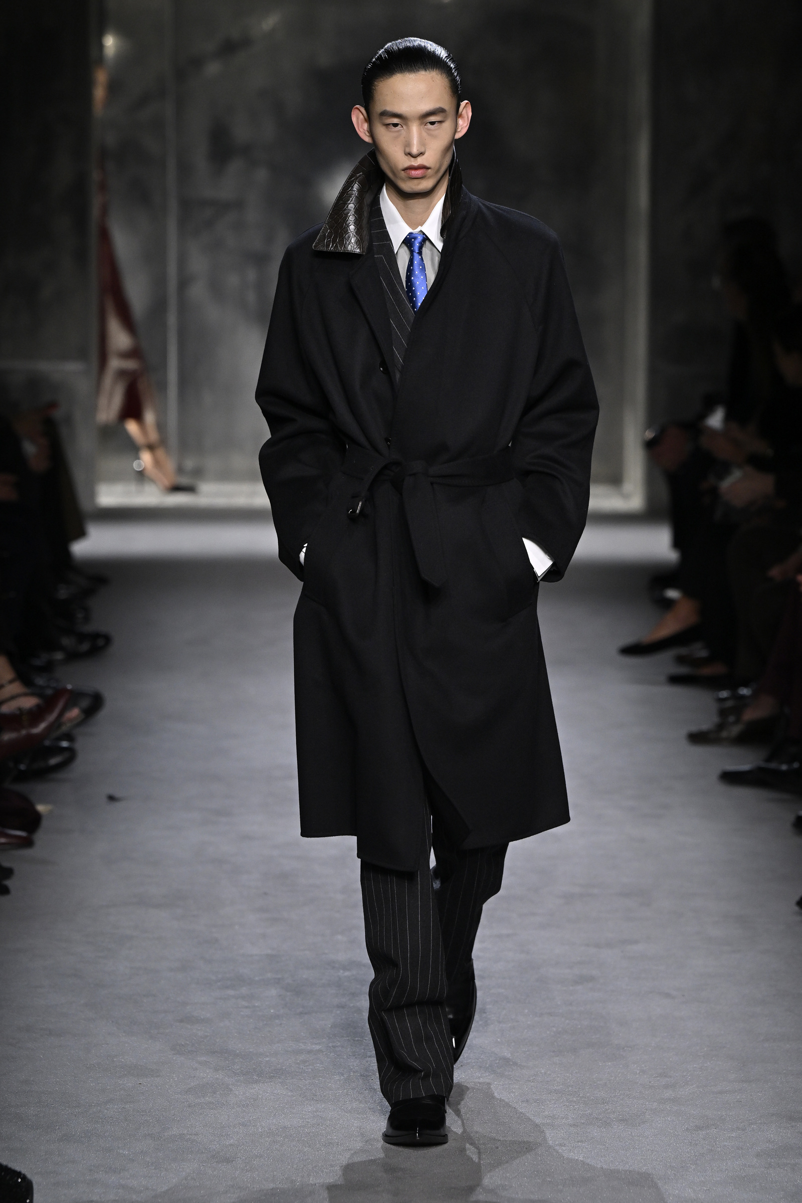 Un caloroso abbraccio chiude il défilé. Un gesto che suggella il successo della prima prova di Haider Ackermann alla guida del brand fondato nel 2005 da Tom Ford. Seduto nel front row, il designer texano si alza e stringe con spontaneità e approvazione Ackermann, arruolato lo scorso settembre per scrivere il nuovo capitolo del marchio oggi di proprietà di Estée Lauder. Un capitolo che parte (decisamente) con il piede giusto.