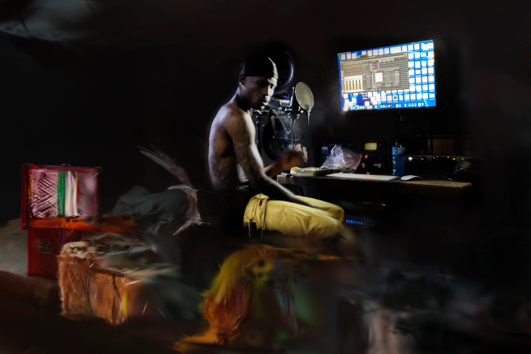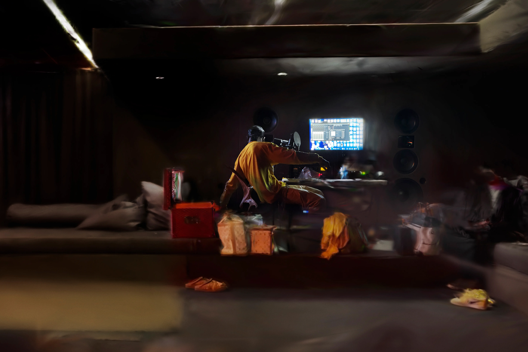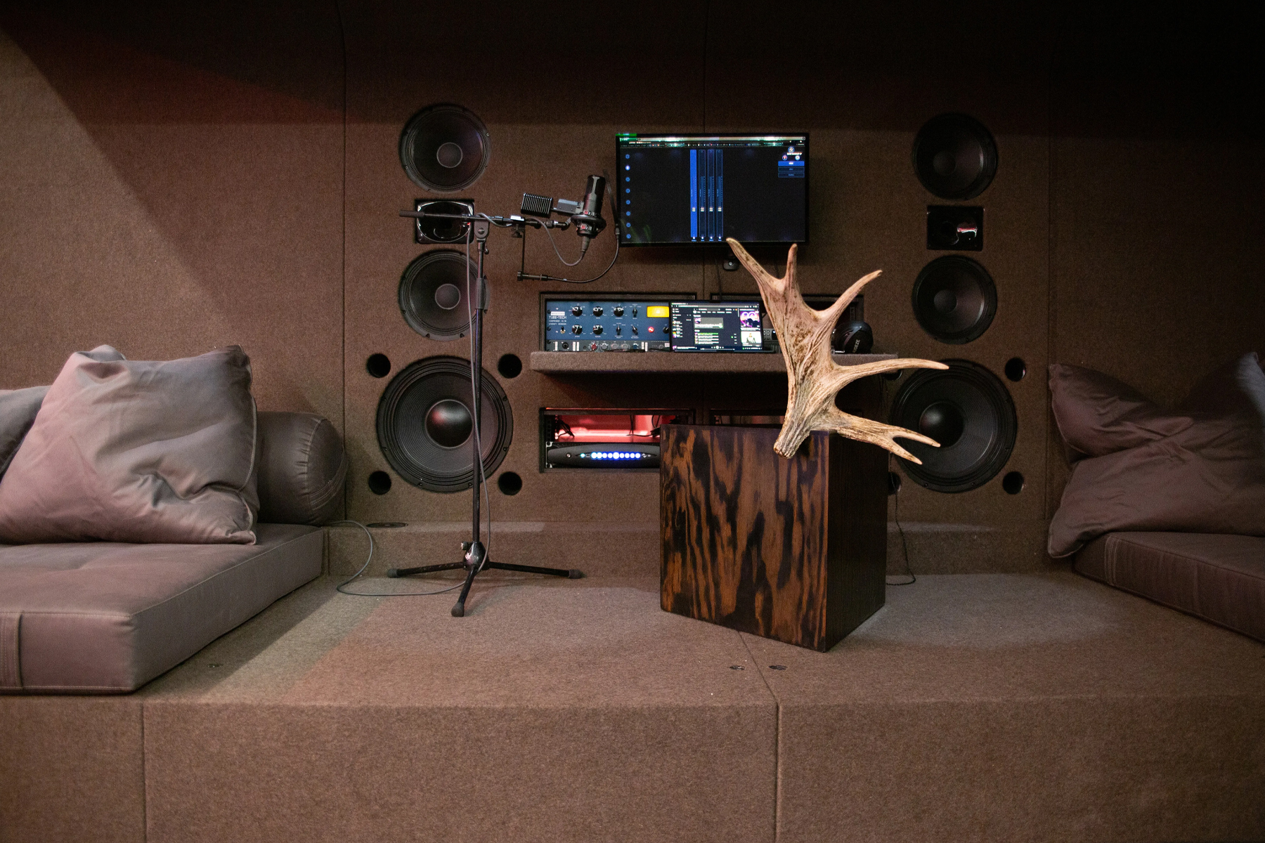 Non poteva ovviamente mancare uno studio per registrare la nuova musica del rapper, progettato per l’occasione da Damien Quintard incastonando speaker, schermi e attrezzatura all’interno di uno dei moduli.