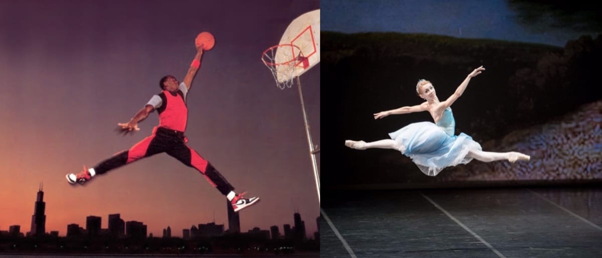 Il logo ritraente la famosissima schiacciata di Micheal Jordan è riconducibile, nella sua primordiale manifestazione, ad uno scatto per Life Magazine in occasione della celebrazione delle olimpiadi 1984, ossia periodo antecedente alla stipulazione del contratto di sponsorizzazione tra MJ e Nike. Per prepararsi alla posa infatti, il cestista sarebbe stato intimato ad imparare una nota movenza di danza classica denominata "grand jetè" per una migliore resa dello scatto.