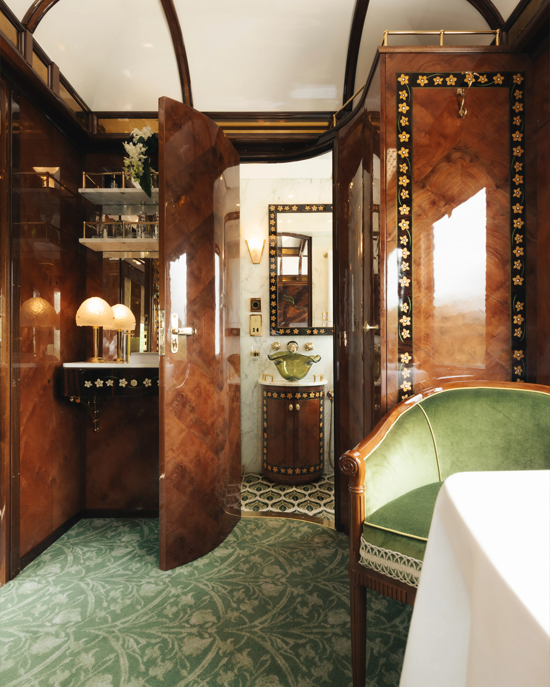 Le lussuose suite e grand suites in stile Art-Déeco del convoglio, che dal punto di vista del design prendono ispirazione dai paesaggi attraversati durante il viaggio, dispongono di bagno privato in marmo e servizio in camera dedicato, in caso gli ospiti decidano di mangiare nel comfort e nella privacy dei rispettivi spazi.
