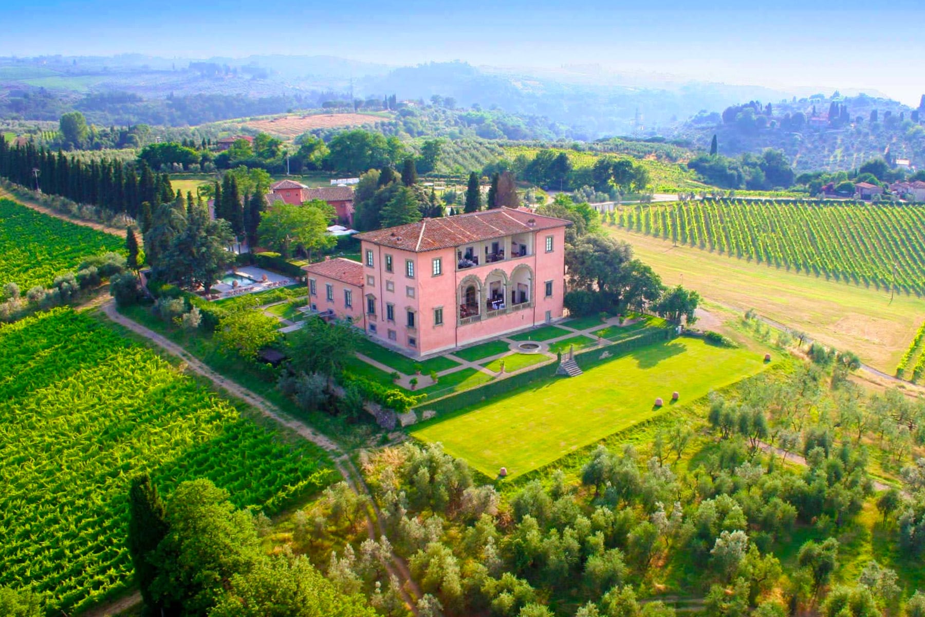 La strada che da Firenze porta nel cuore del Chianti, tra vigne e ulivi, è un susseguirsi di profumi di storia, cultura e arte. Qui sorge Villa Mangiacane, un antico edificio risalente alla fine del XIV secolo, circondato da dolci colline verdi e abbracciato da 750 ettari di vigneti, uliveti e boschi, che domina Firenze come una classica immagine da cartolina toscana. Questo magnifico edificio del XVI secolo, con una facciata arancione rosata dall’inconfondibile mano di Michelangelo, è oggi un lussuoso hotel e spa a cinque stelle.