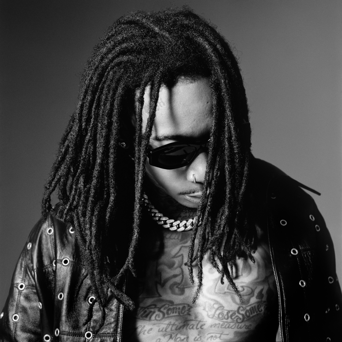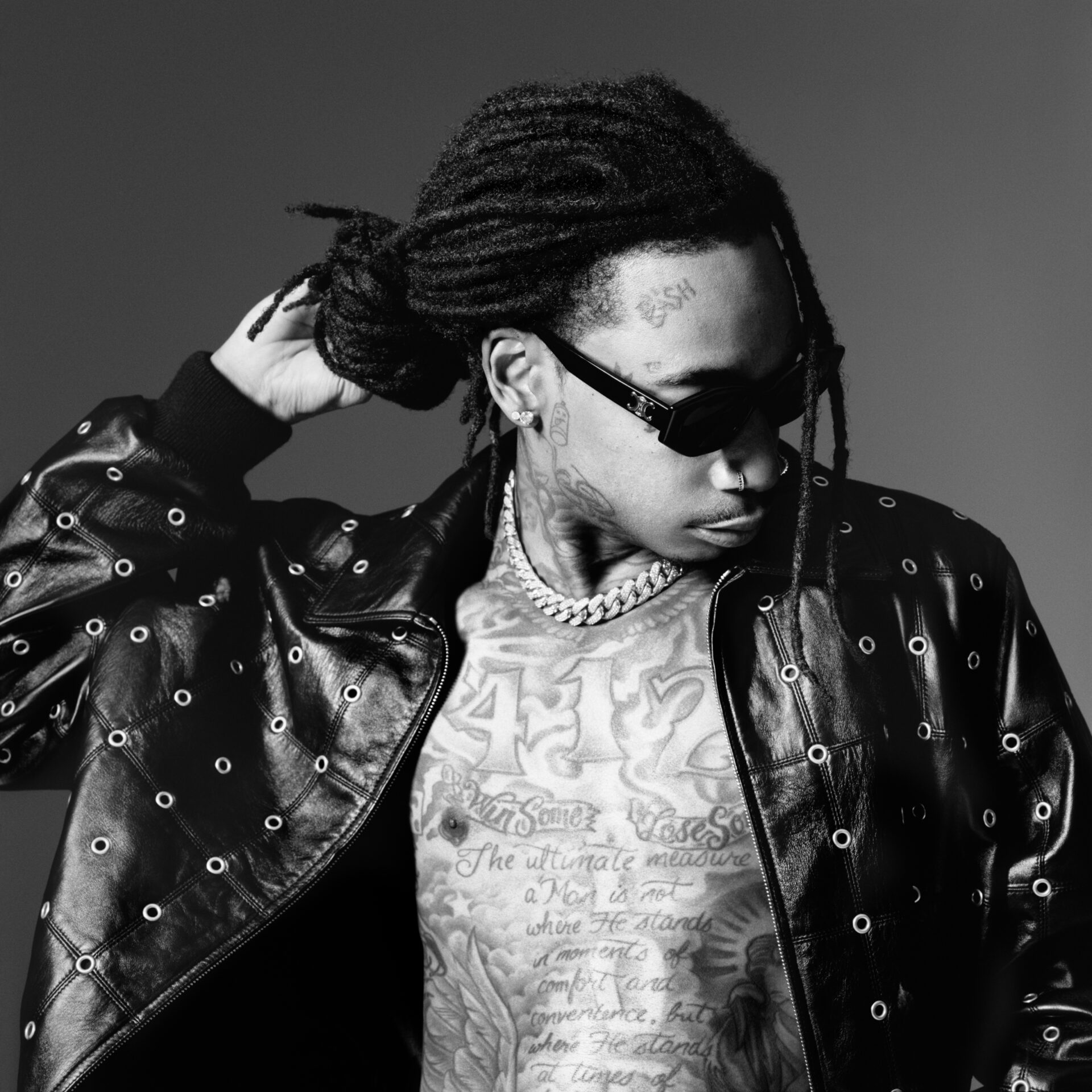Gli scatti, opera di Slimane stesso, ritraggono Wiz Khalifa nella sua essenza più intima, completamente a suo agio nello sfoggiare con stile e personalità una leather jacket con dettagli metallici abbinata ad occhiali da sole e collana di diamanti.